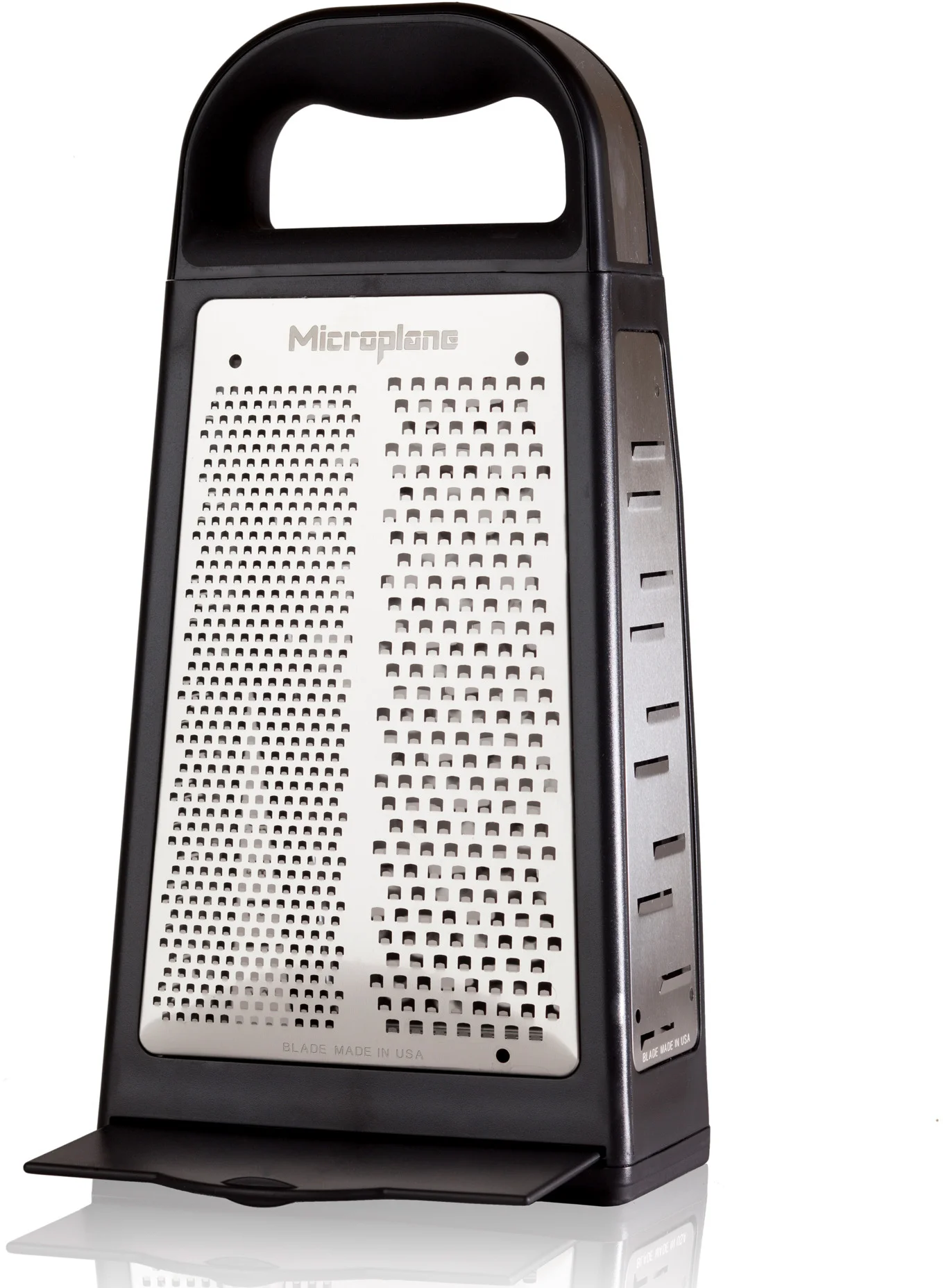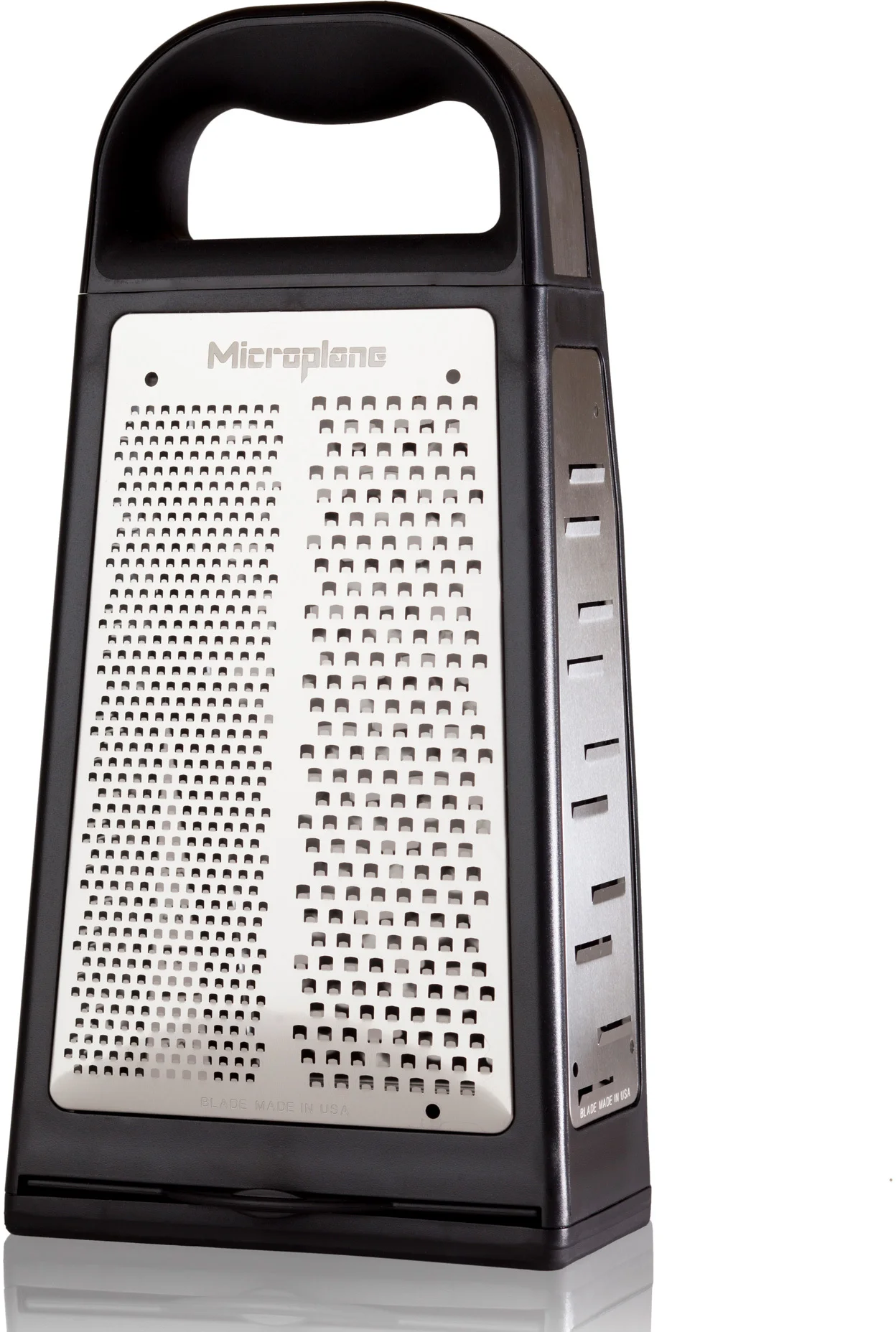 Uznana na całym świecie amerykańska firma Microplane jest producentem z 50-letnim doświadczeniem, który zastosował do produkcji młynka i tarek technologię fototrawienia - innowacyjny proces zaprojektowany specjalnie do tworzenia ultra-ostrych krawędzi tnących. Maleńkie zęby zachowują się jak niezwykle ostre noże do precyzyjnego krojenia składników. Nie rozdzierają i nie zgniatają produktów jak większość dostępnych na rynku „tarek tłoczonych”. Te specjalistyczne ostrza sprawiają, że jedzenie nie przykleja się ani nie blokuje, ale delikatnie przesuwa się po powierzchni cięcia, zapewniając doskonałe rezultaty ścierania na drobne wiórki i nitki, a produkty wilgotne na miazgę.