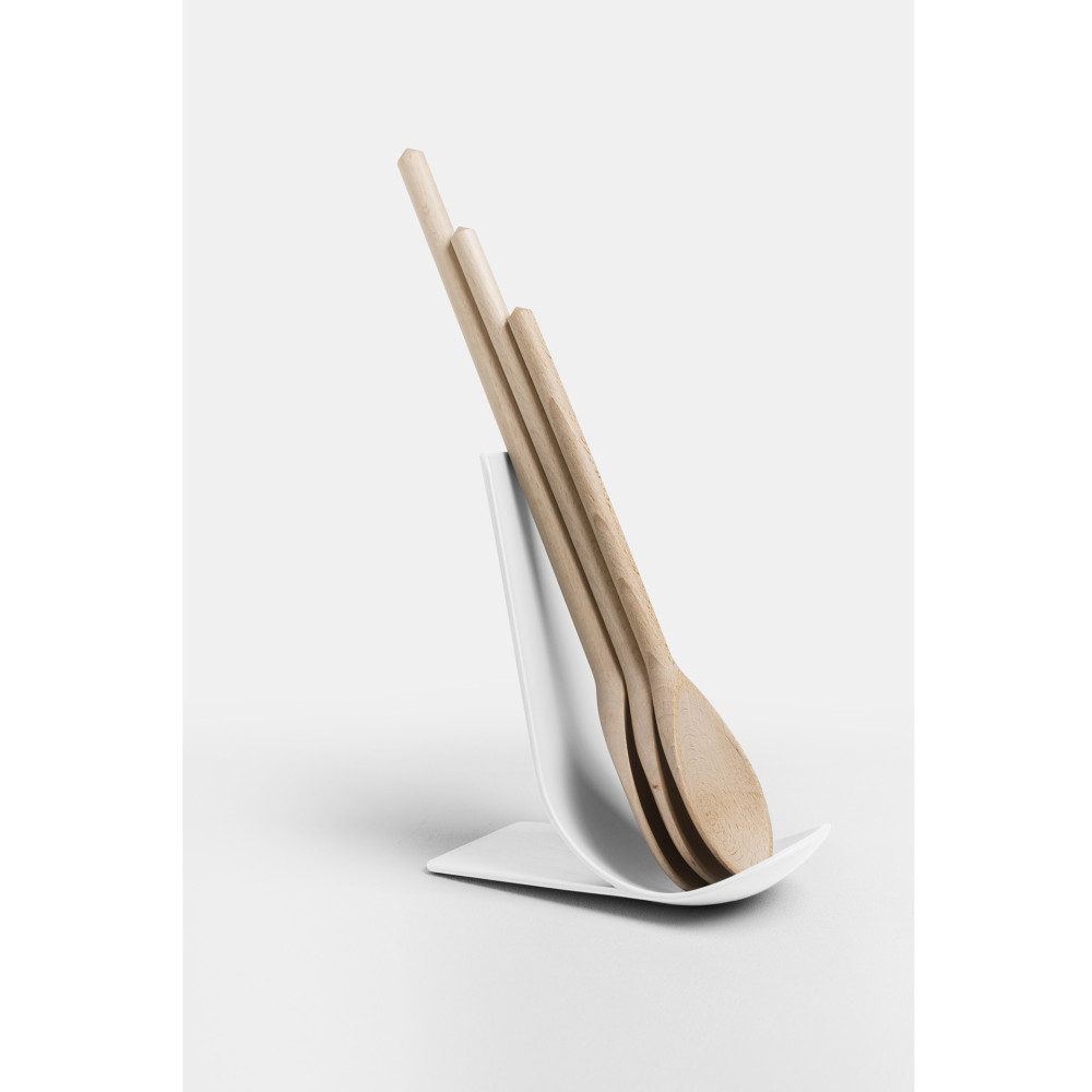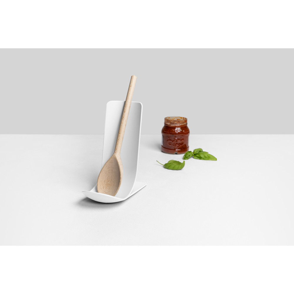 Podstawka STAND to doskonały pomocnik w kuchni, nie tylko do ustawiania łyżek czy chochli, ale także do podparcia książki, telefonu lub tabletu. Zakrzywiona, stabilna forma z lekkim wgłębieniem u podstawy, skutecznie chroni blat przed zanieczyszczeniami po np. ociekających sosem łyżkach. Podstawa posiada antypoślizgowe zabezpieczenie, dzięki czemu jest bardzo stabilna i nie przesuwa się.