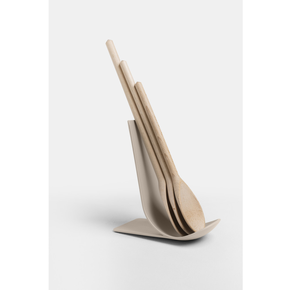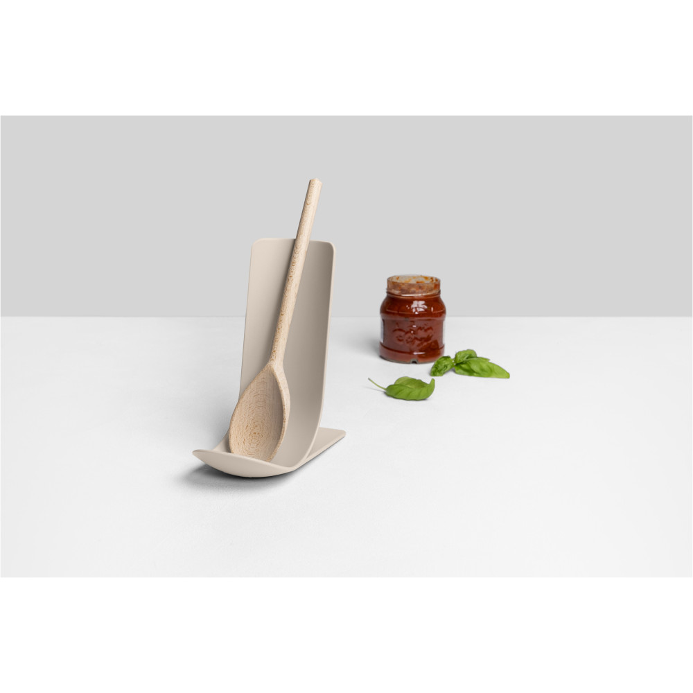 Podstawka STAND to doskonały pomocnik w kuchni, nie tylko do ustawiania łyżek czy chochli, ale także do podparcia książki, telefonu lub tabletu. Zakrzywiona, stabilna forma z lekkim wgłębieniem u podstawy, skutecznie chroni blat przed zanieczyszczeniami po np. ociekających sosem łyżkach. Podstawa posiada antypoślizgowe zabezpieczenie, dzięki czemu jest bardzo stabilna i nie przesuwa się.
