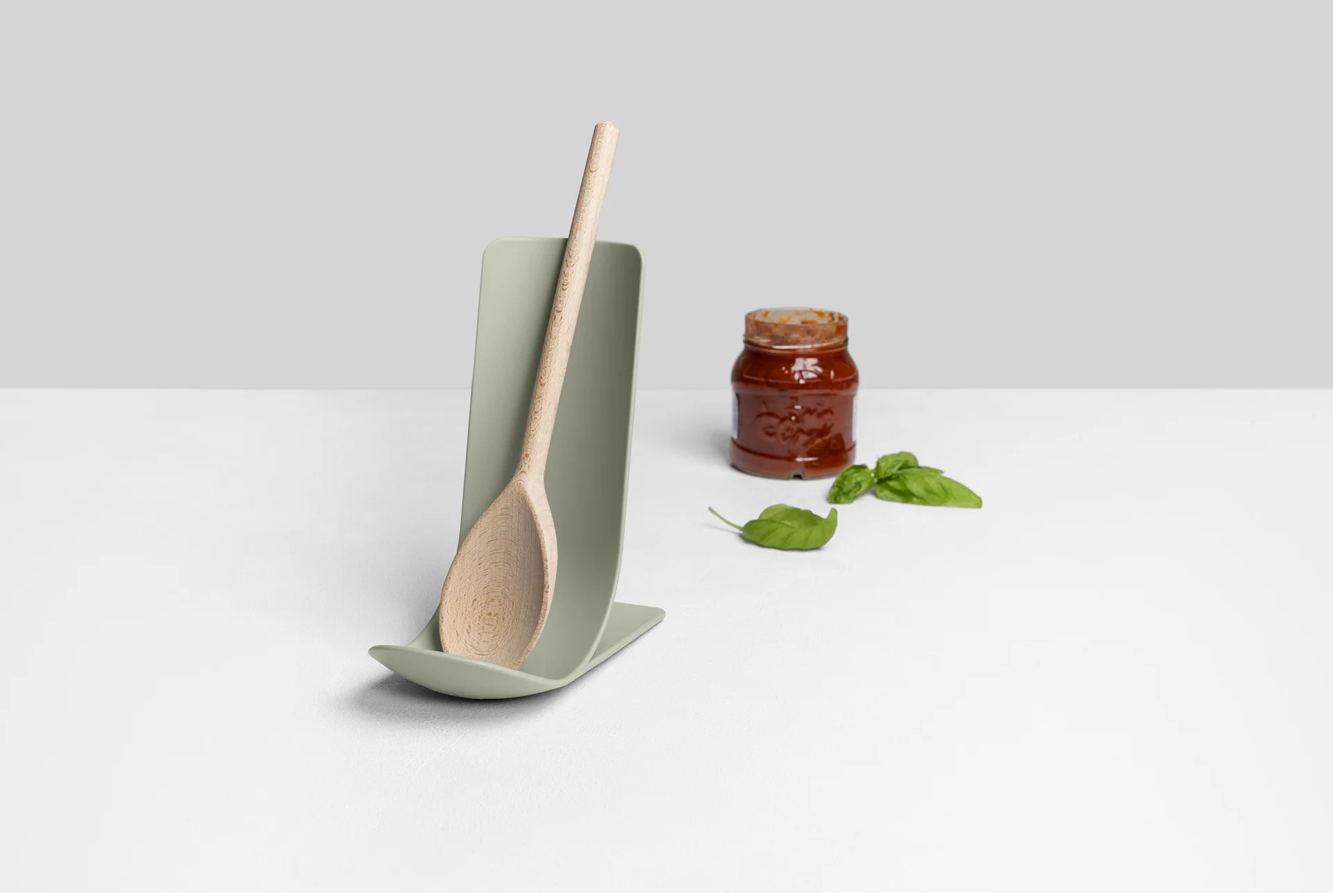 Podstawka STAND to doskonały pomocnik w kuchni, nie tylko do ustawiania łyżek czy chochli, ale także do podparcia książki, telefonu lub tabletu. Zakrzywiona, stabilna forma z lekkim wgłębieniem u podstawy, skutecznie chroni blat przed zanieczyszczeniami po np. ociekających sosem łyżkach. Podstawa posiada antypoślizgowe zabezpieczenie, dzięki czemu jest bardzo stabilna i nie przesuwa się.
