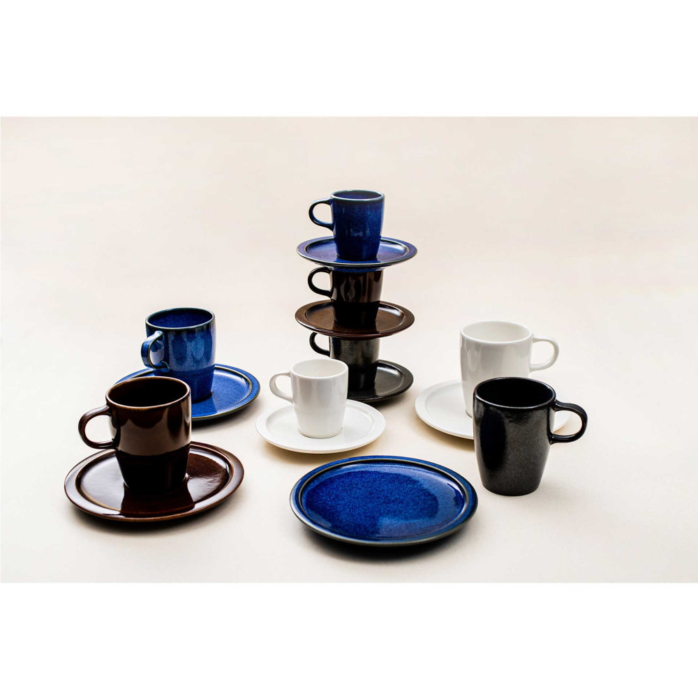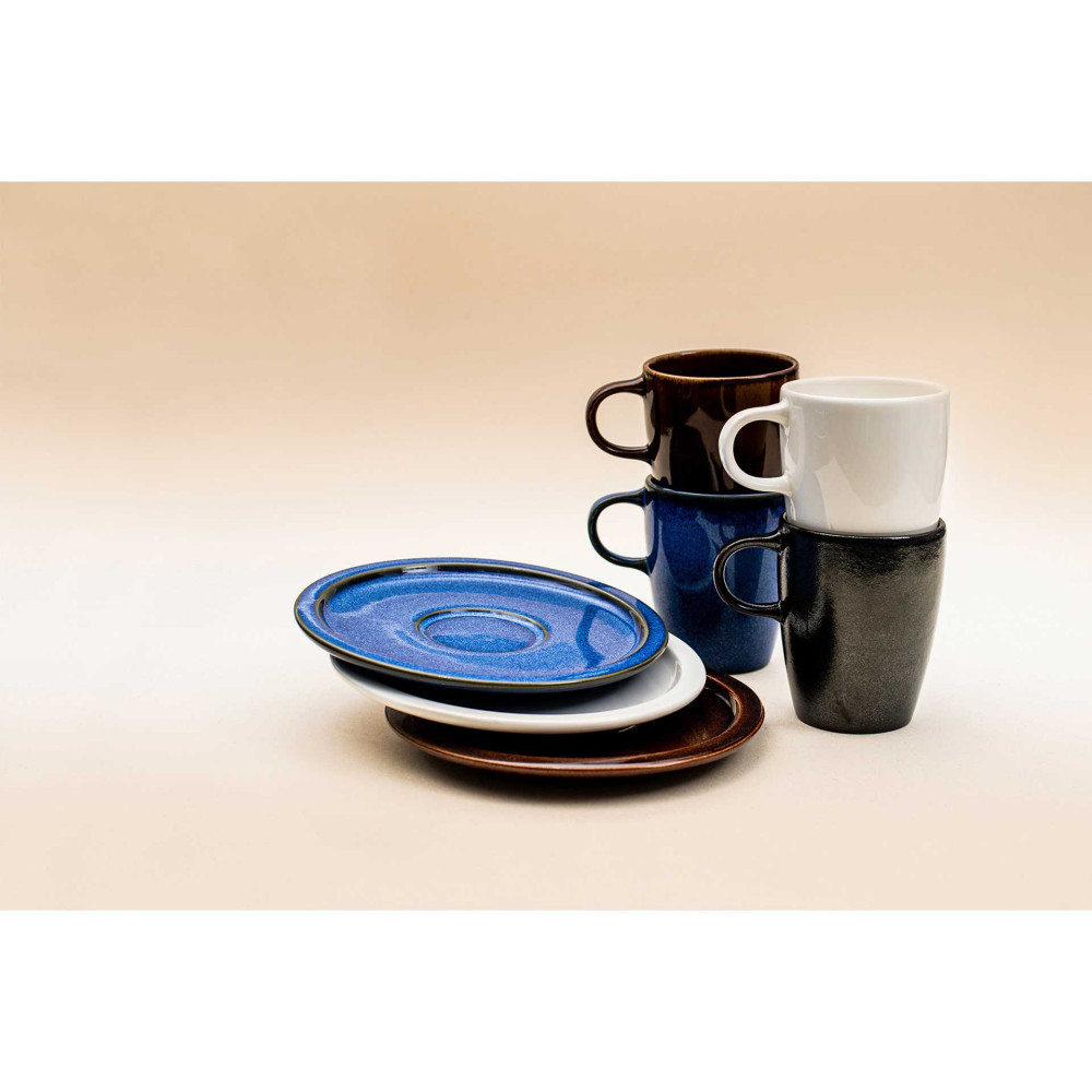 Elementy porcelany RAKSTONE dostępne są w czterech wariantach kolorystycznych: białym, wulkanicznym, kobaltowym oraz bursztynowym.