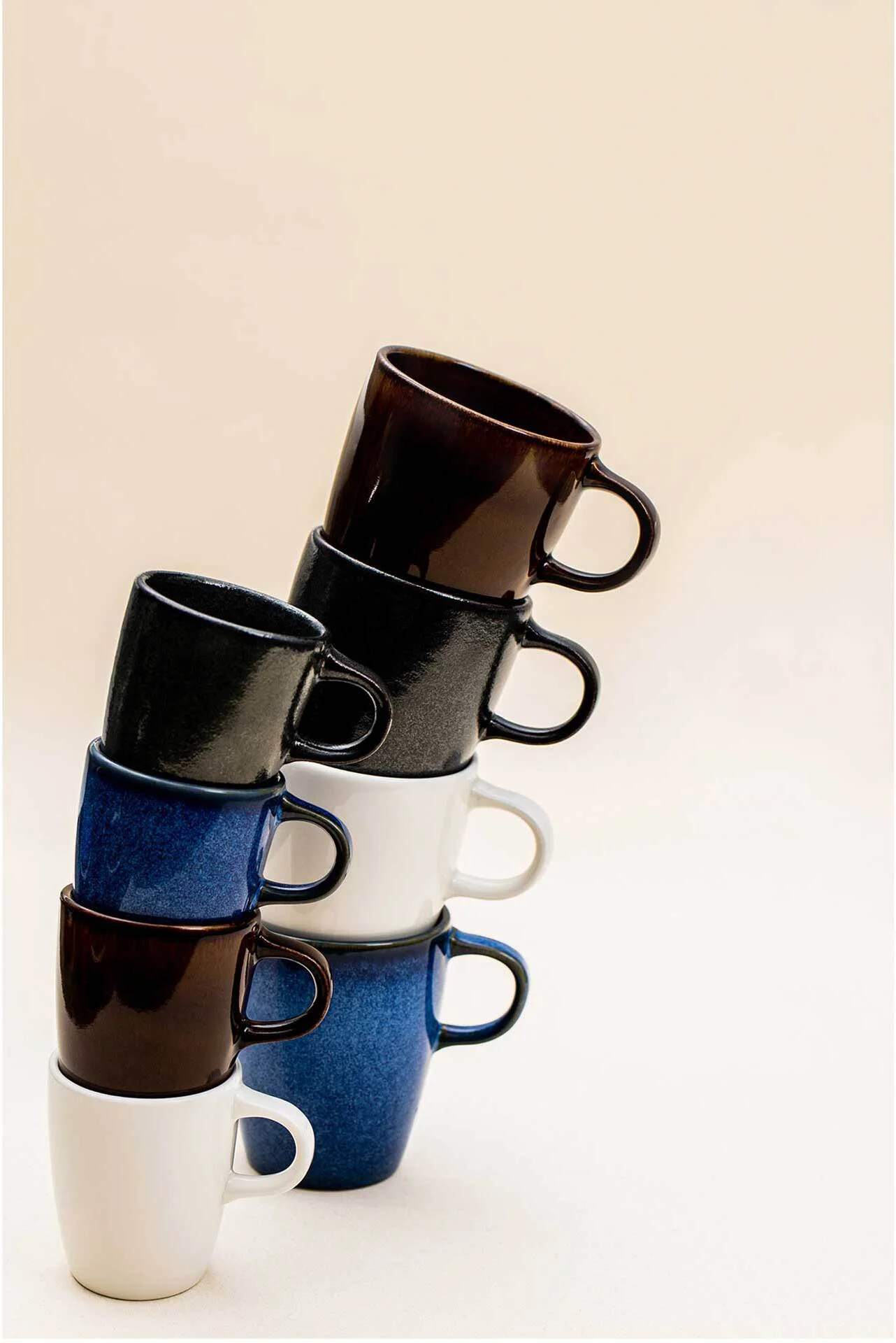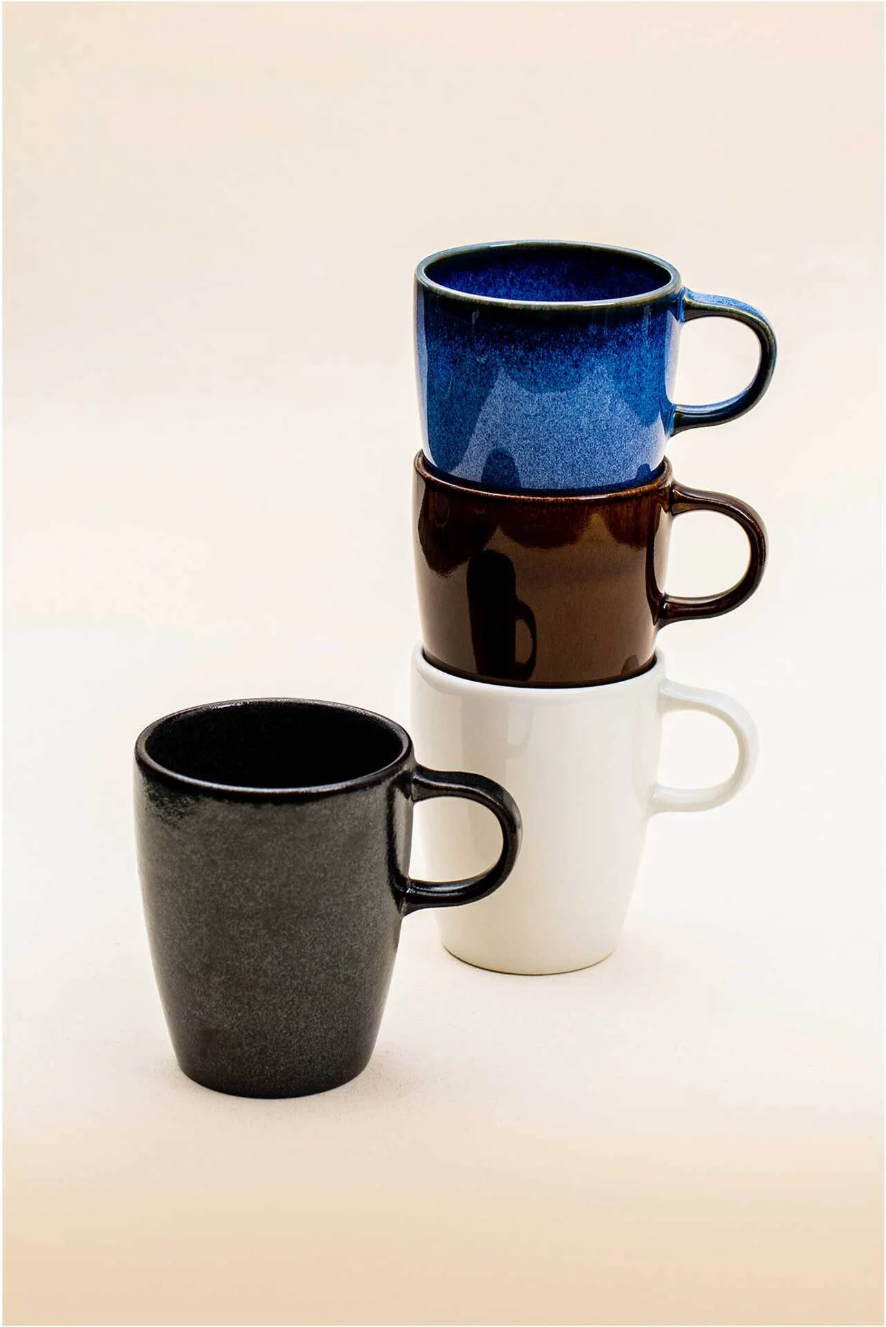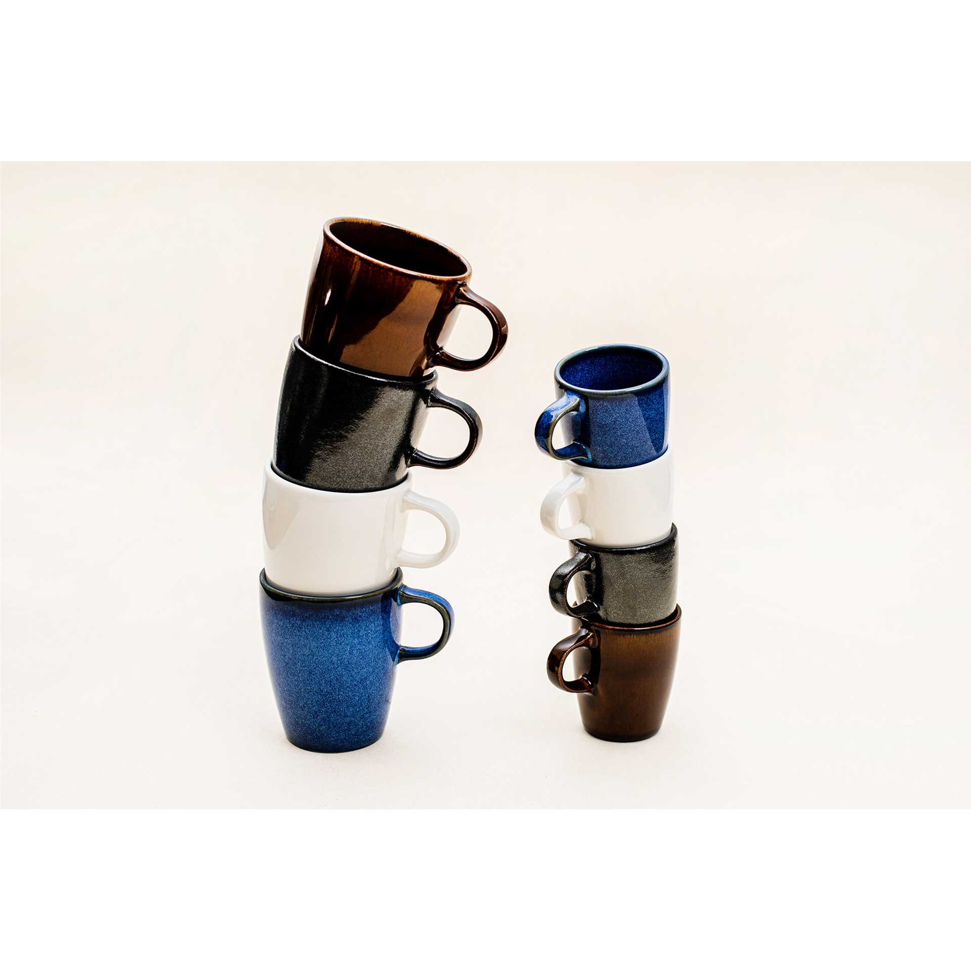 Elementy porcelany RAKSTONE dostępne są w czterech wariantach kolorystycznych: białym, wulkanicznym, kobaltowym oraz bursztynowym.