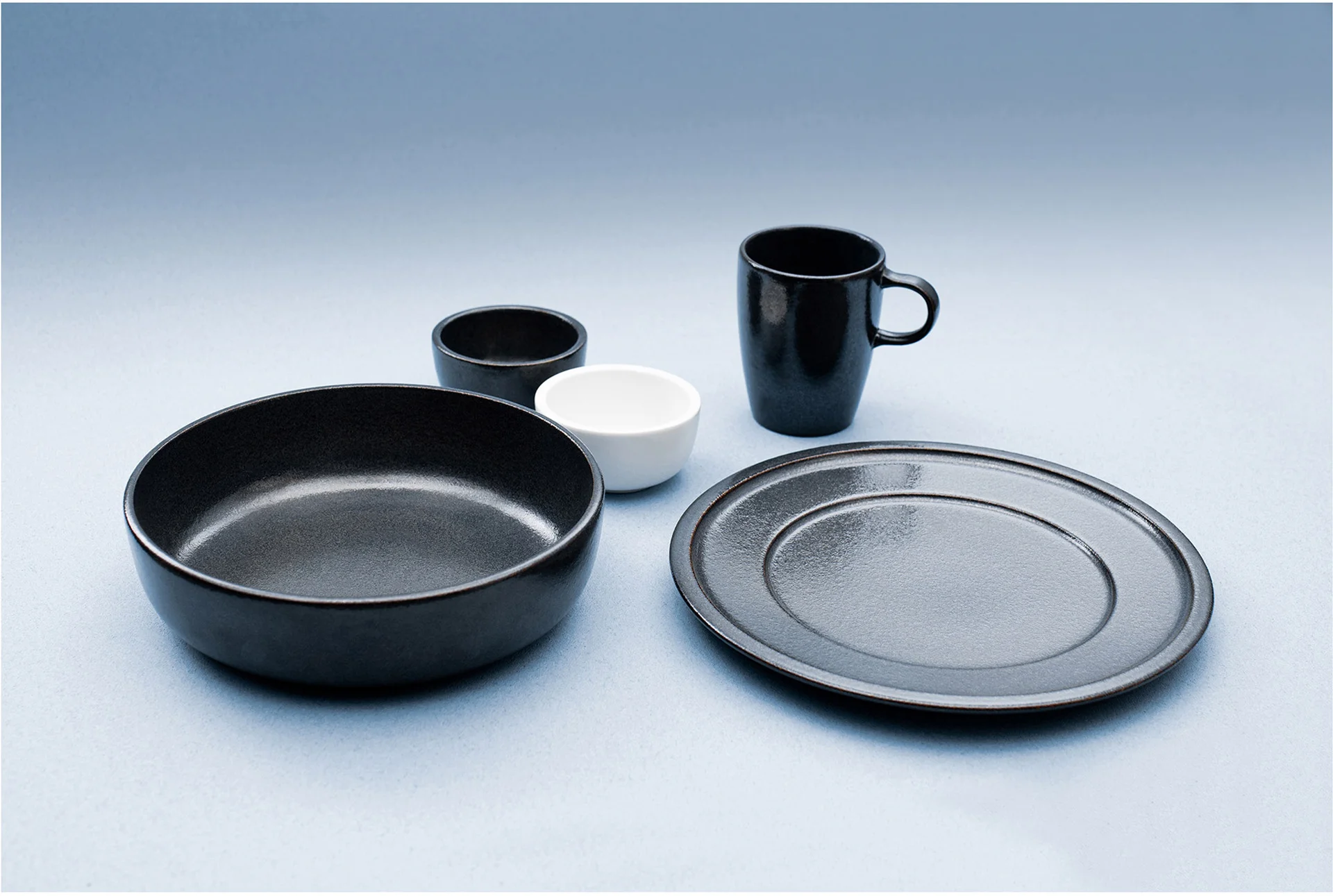 Elementy porcelany RAKSTONE dostępne są w czterech wariantach kolorystycznych: białym, wulkanicznym, kobaltowym oraz bursztynowym.