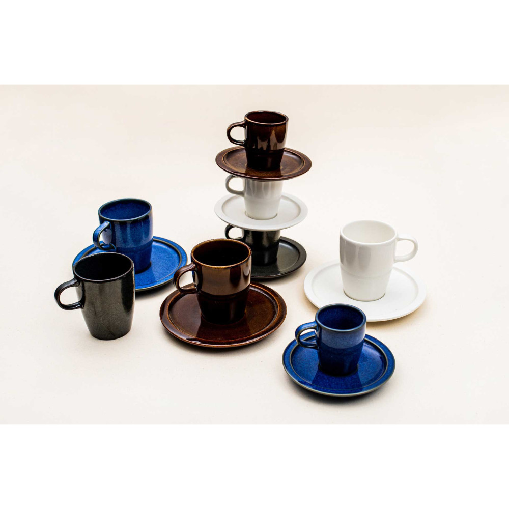 Elementy porcelany RAKSTONE dostępne są w czterech wariantach kolorystycznych: białym, wulkanicznym, kobaltowym oraz bursztynowym.