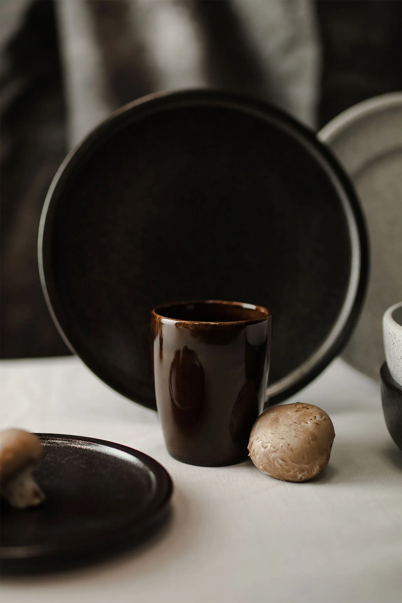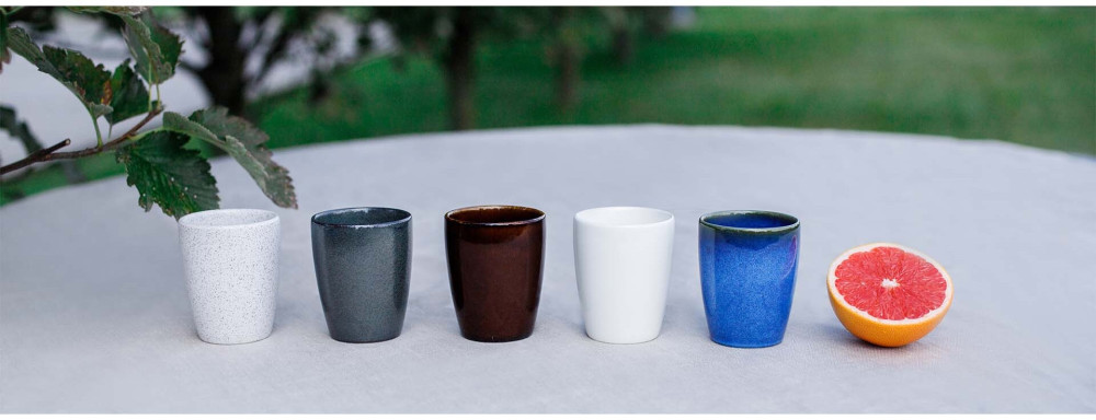 Elementy porcelany EASE dostępne są w czterech wariantach kolorystycznych: białym, wulkanicznym, kobaltowym oraz bursztynowym.