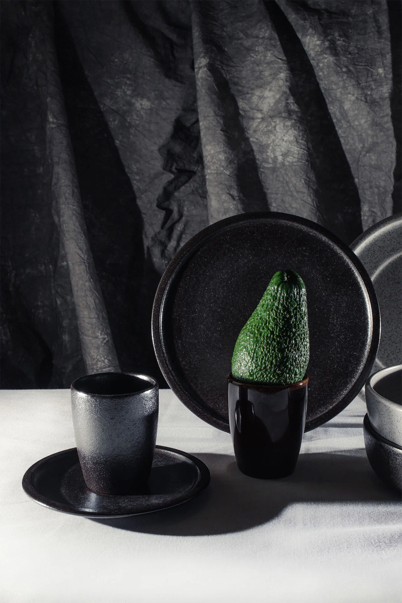 Elementy porcelany EASE dostępne są w czterech wariantach kolorystycznych: białym, wulkanicznym, kobaltowym oraz bursztynowym.