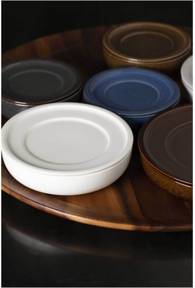 Elementy porcelany RAKSTONE dostępne są w czterech wariantach kolorystycznych: białym, wulkanicznym, kobaltowym oraz bursztynowym.
