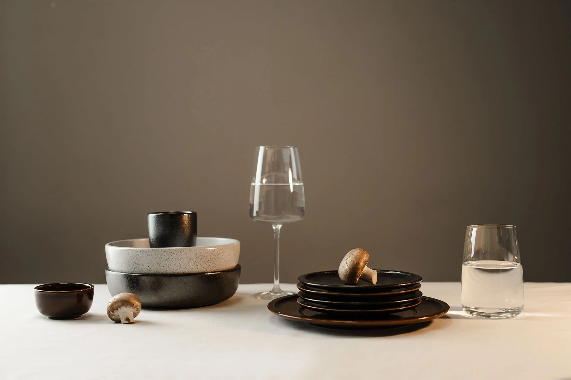 Elementy porcelany EASE dostępne są w czterech wariantach kolorystycznych: białym, wulkanicznym, kobaltowym oraz bursztynowym.
