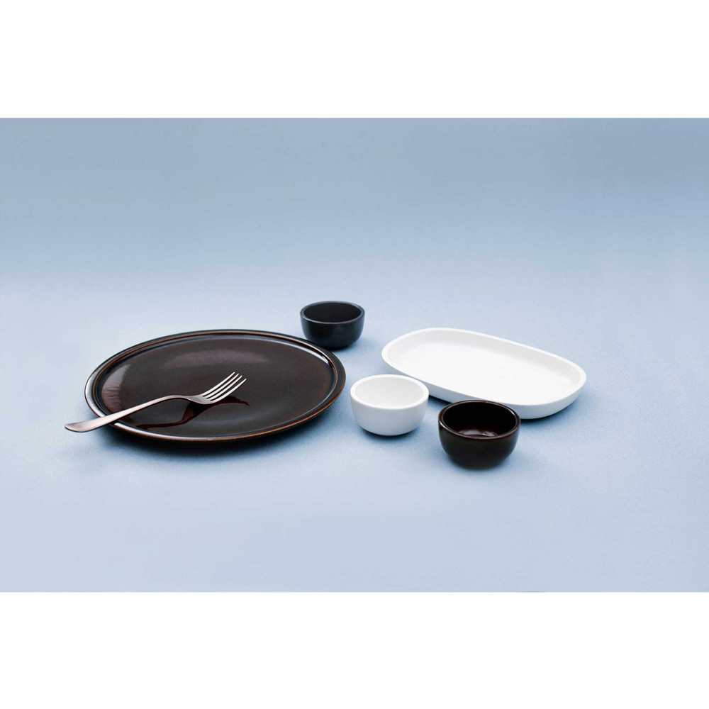 Elementy porcelany RAKSTONE dostępne są w czterech wariantach kolorystycznych: białym, wulkanicznym, kobaltowym oraz bursztynowym.