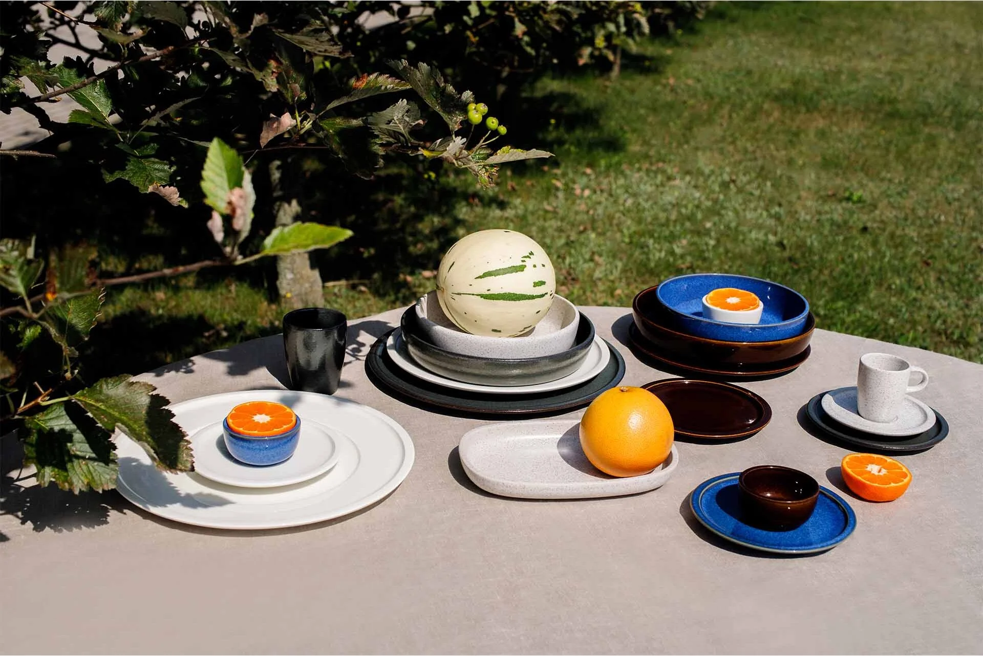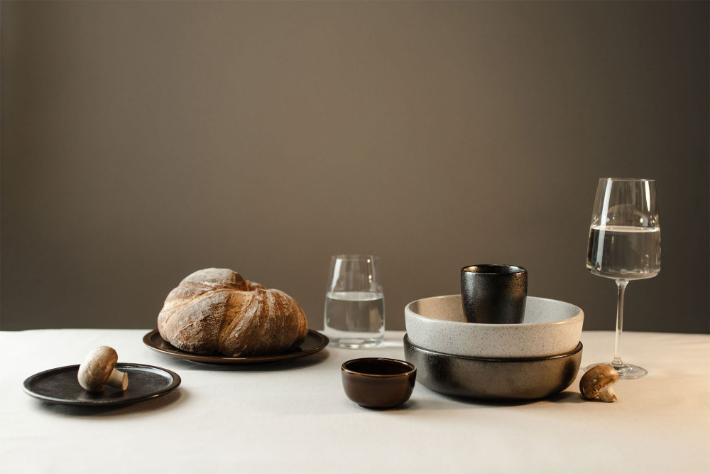 Elementy porcelany RAKSTONE dostępne są w czterech wariantach kolorystycznych: białym, wulkanicznym, kobaltowym oraz bursztynowym.