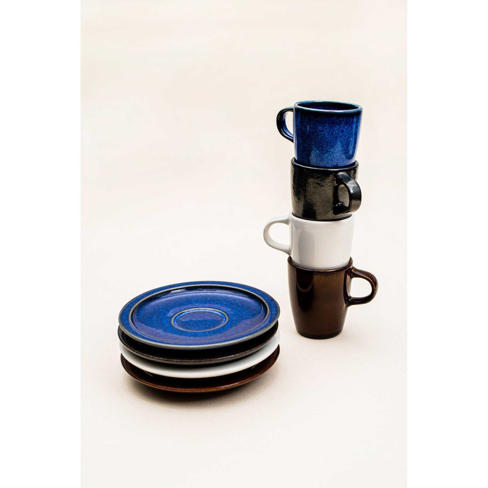 Elementy porcelany RAKSTONE dostępne są w czterech wariantach kolorystycznych: białym, wulkanicznym, kobaltowym oraz bursztynowym.