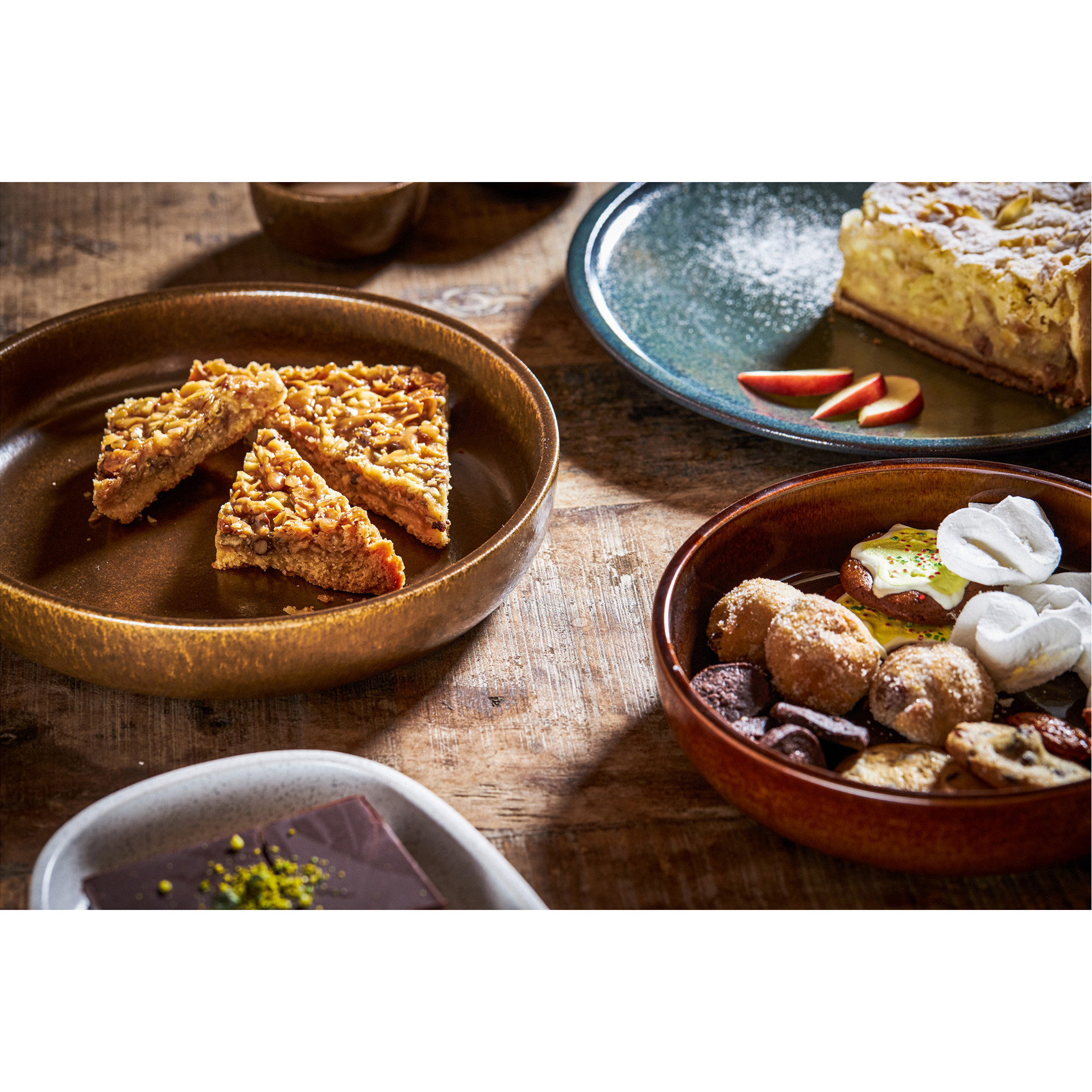 Elementy porcelany RAKSTONE dostępne są w czterech wariantach kolorystycznych: białym, wulkanicznym, kobaltowym oraz bursztynowym.