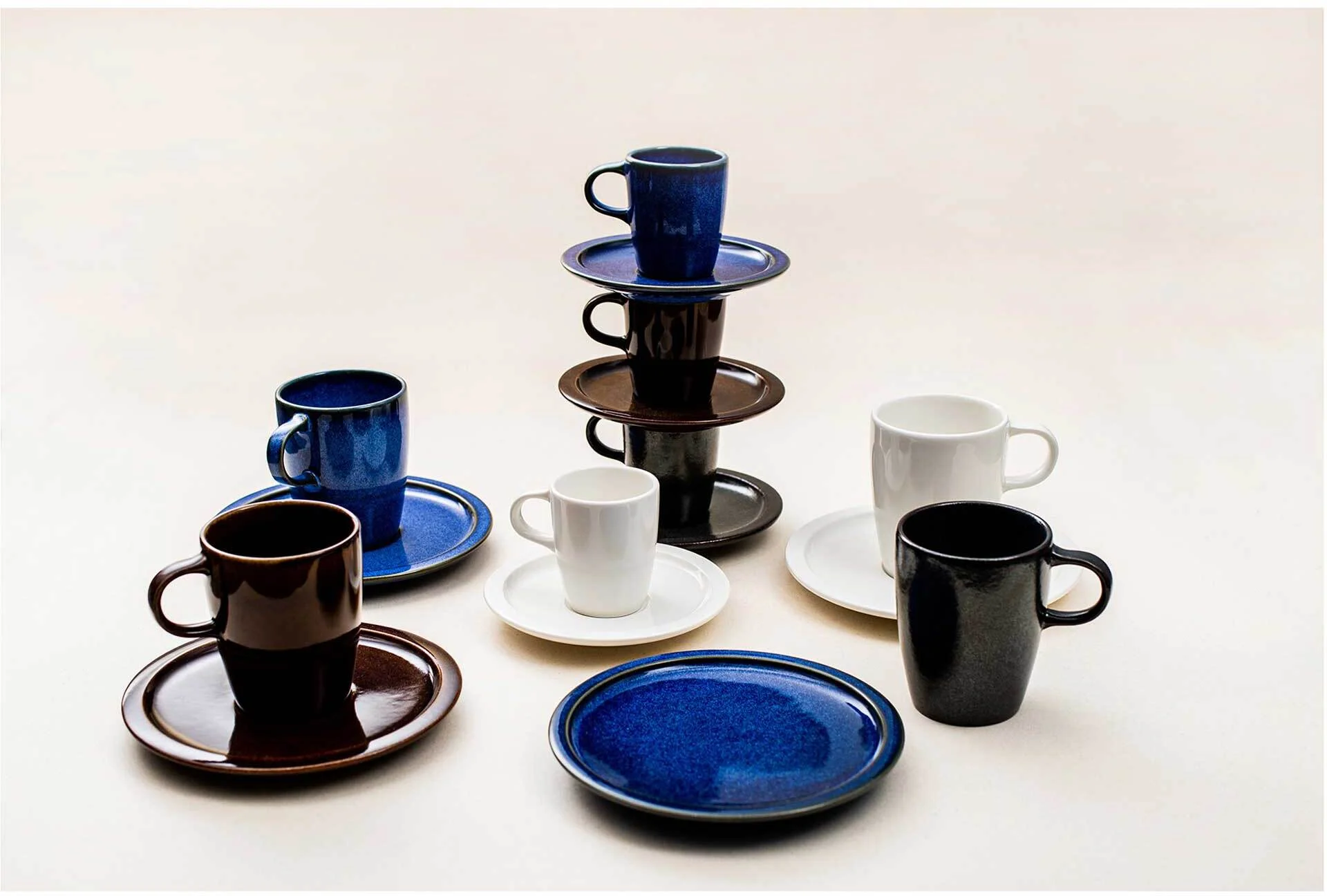 Elementy porcelany RAKSTONE dostępne są w czterech wariantach kolorystycznych: białym, wulkanicznym, kobaltowym oraz bursztynowym.