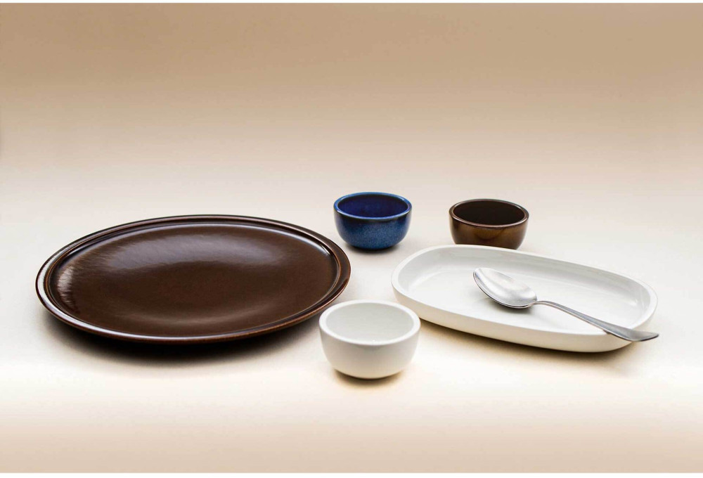 Elementy porcelany RAKSTONE dostępne są w czterech wariantach kolorystycznych: białym, wulkanicznym, kobaltowym oraz bursztynowym.