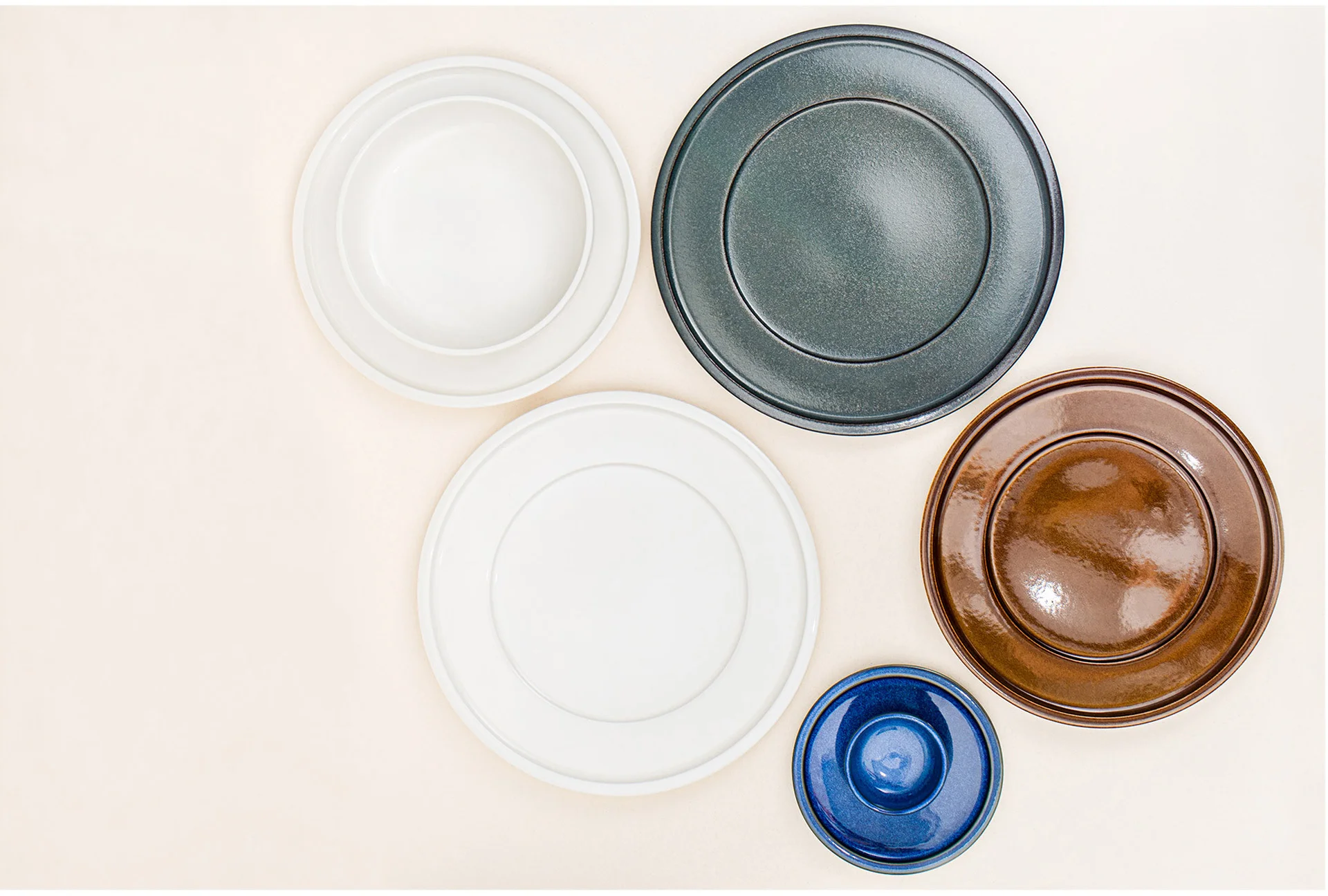 Elementy porcelany RAKSTONE dostępne są w czterech wariantach kolorystycznych: białym, wulkanicznym, kobaltowym oraz bursztynowym.