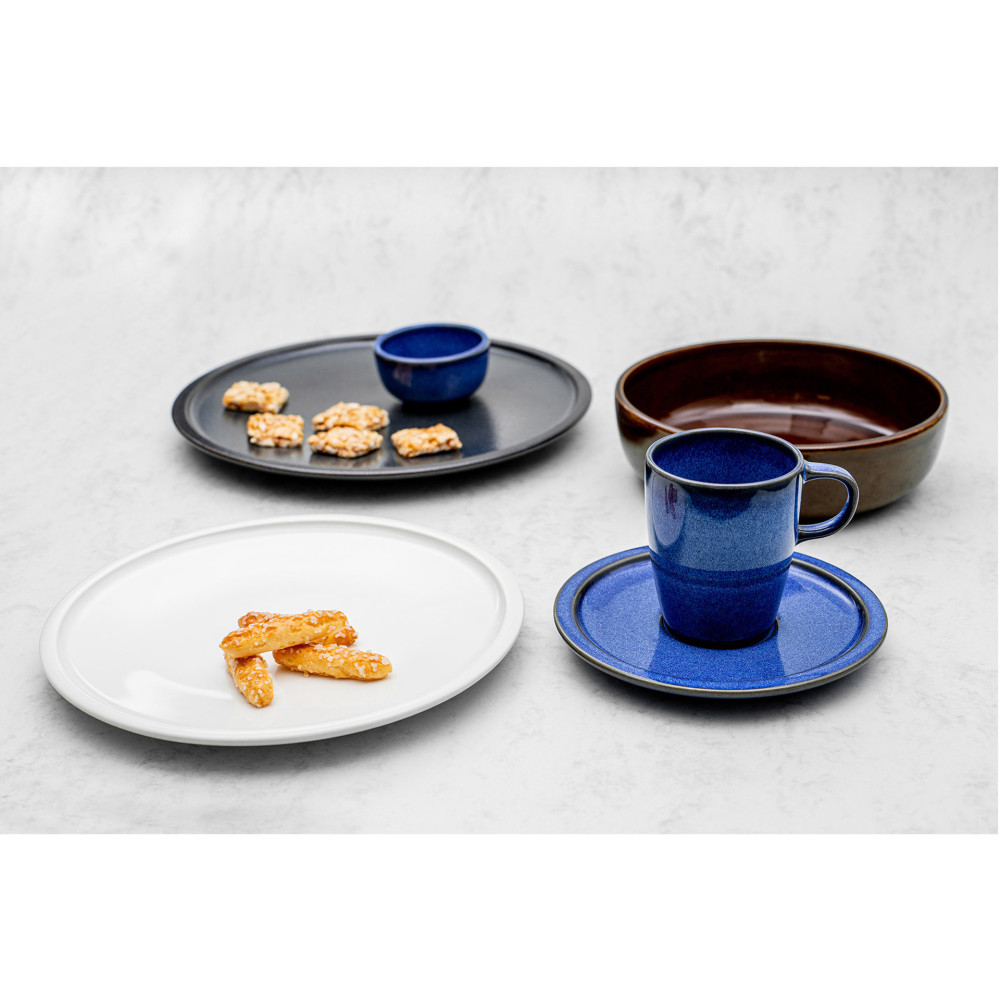 Elementy porcelany RAKSTONE dostępne są w czterech wariantach kolorystycznych: białym, wulkanicznym, kobaltowym oraz bursztynowym.