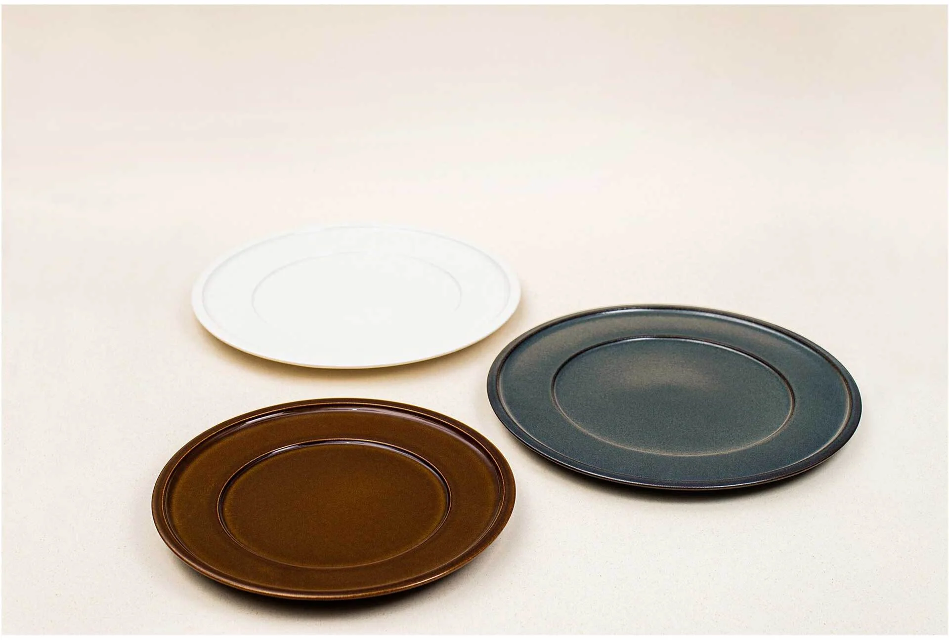 Elementy porcelany RAKSTONE dostępne są w czterech wariantach kolorystycznych: białym, wulkanicznym, kobaltowym oraz bursztynowym.
