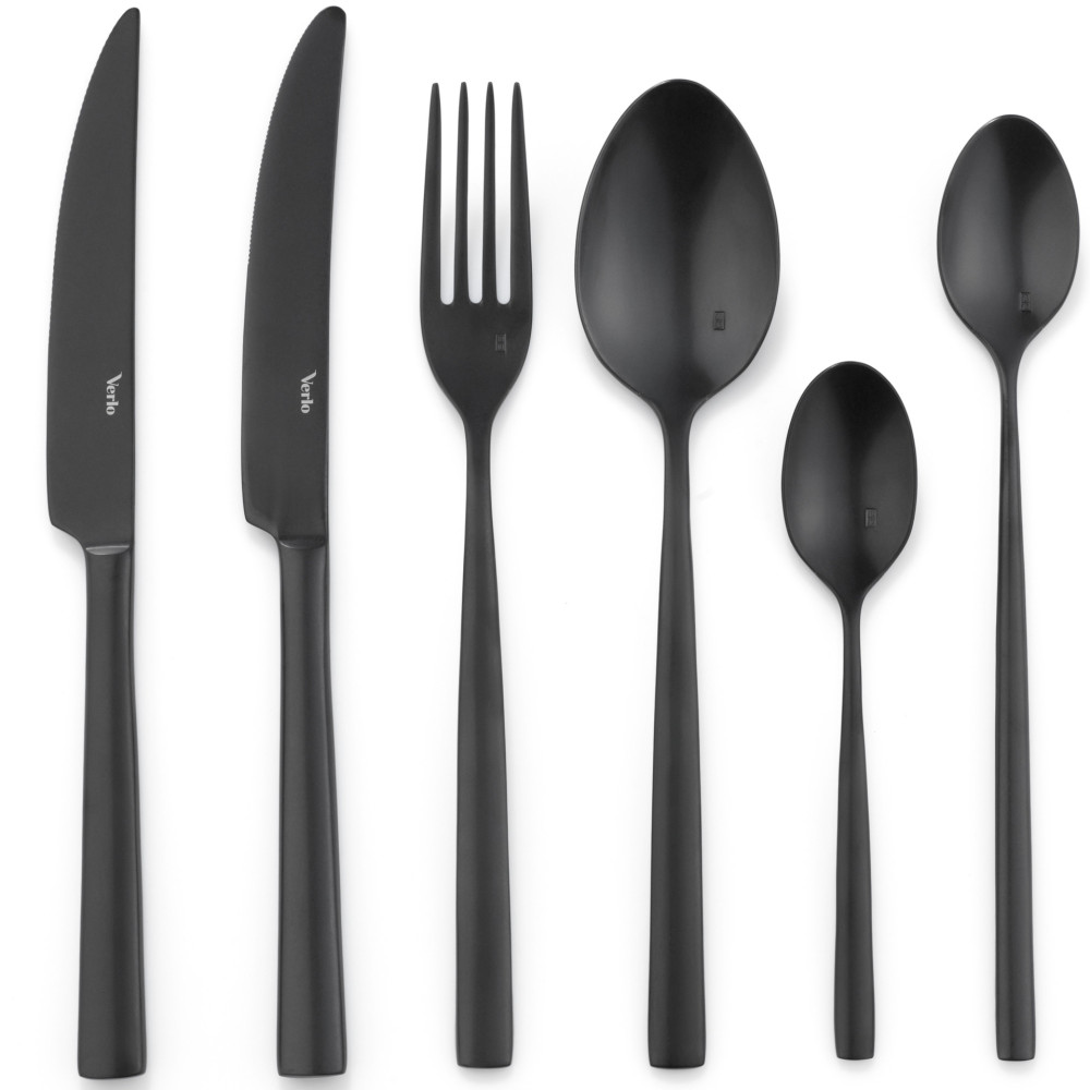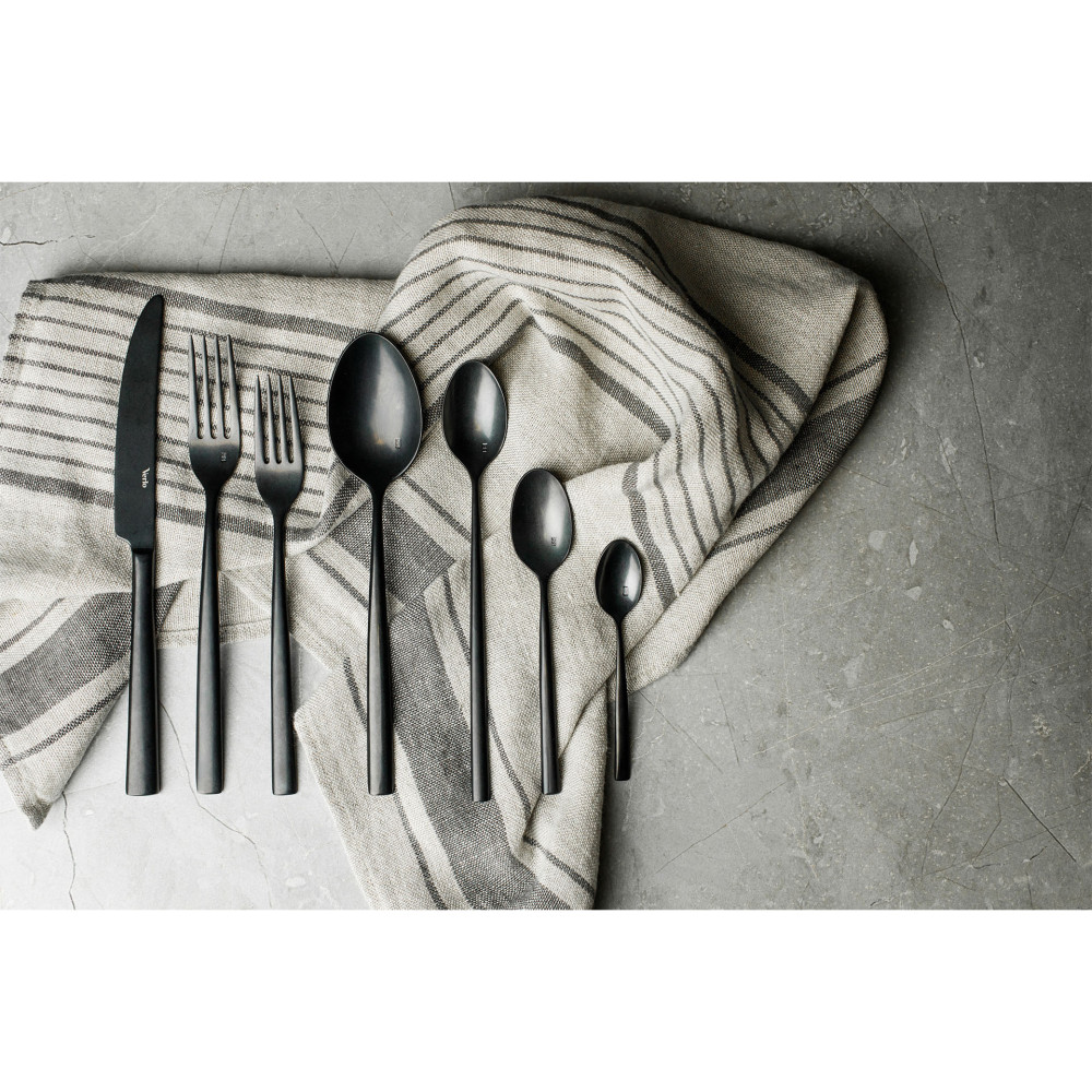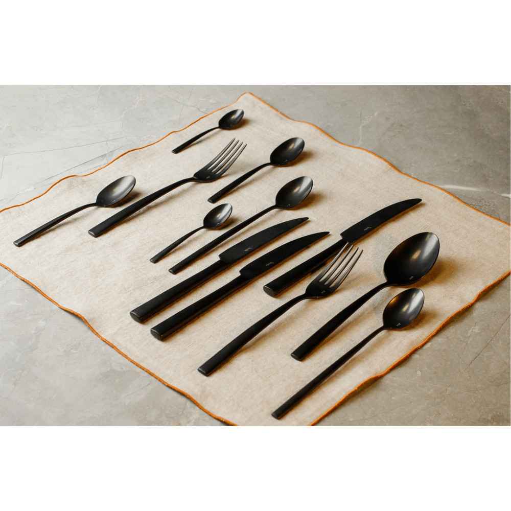 SU BLACK. Nowoczesne, wyjątkowe, minimalistyczne sztućce z matowym wykończeniem w kolorze modnej czerni. Ta kolekcja zachwyca swym minimalistycznym designem. Idealnie wyważona! Wyraźnie zarysowana linia ostrza, długie widelce i płynne połączenie górnej części z trzonkami nadaje tej kolekcji wizualnej lekkości. Widoczny grawer na części użytkowej, z symbolem rodzaju stali, zachwyca szykownym efektem wizualnym. Wyjątkowa linia pasująca do wnętrz w nowoczesnym stylu.