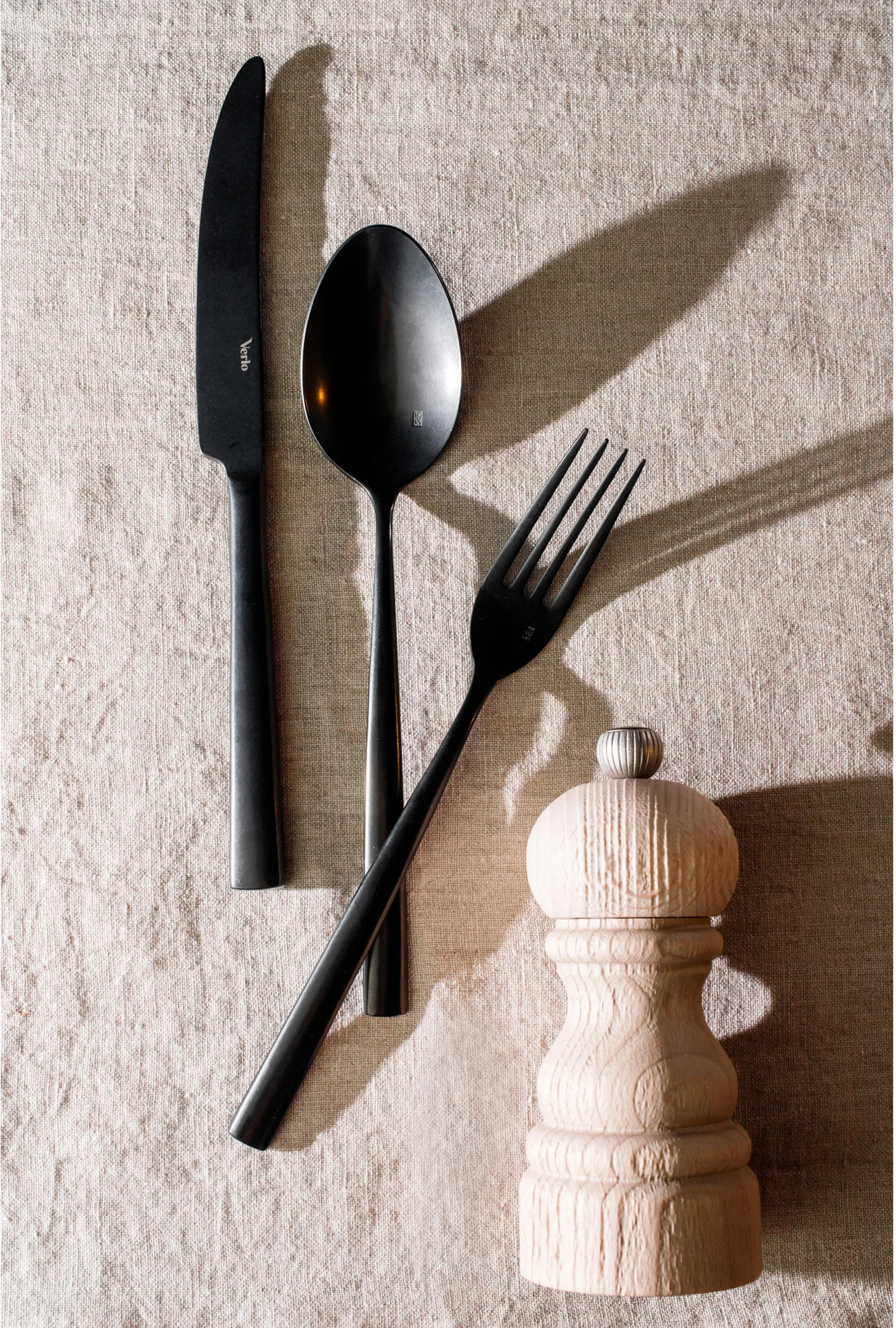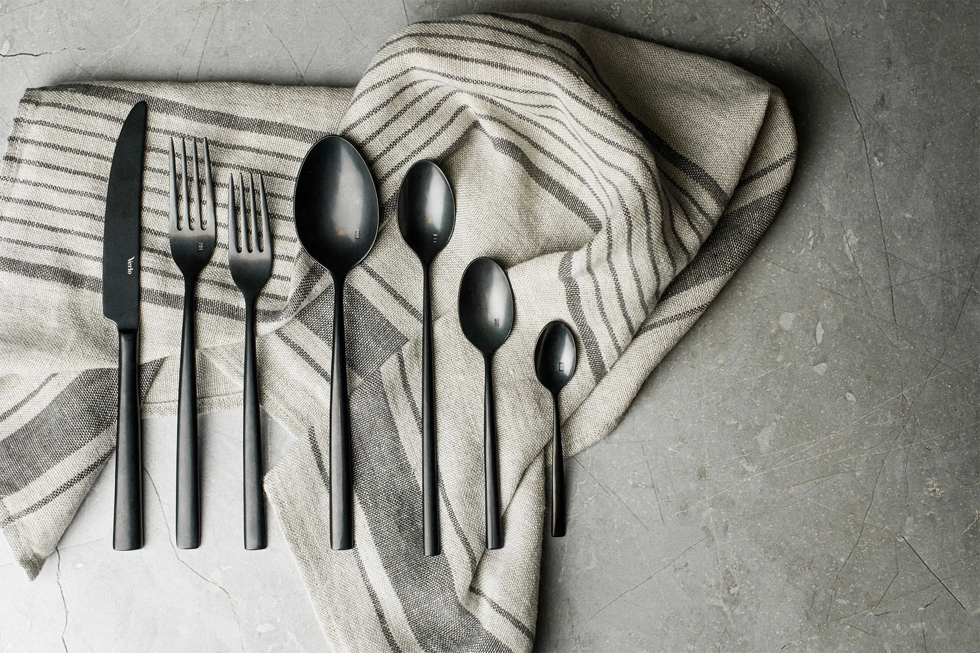 SU BLACK. Nowoczesne, wyjątkowe, minimalistyczne sztućce z matowym wykończeniem w kolorze modnej czerni. Ta kolekcja zachwyca swym minimalistycznym designem. Idealnie wyważona! Wyraźnie zarysowana linia ostrza, długie widelce i płynne połączenie górnej części z trzonkami nadaje tej kolekcji wizualnej lekkości. Widoczny grawer na części użytkowej, z symbolem rodzaju stali, zachwyca szykownym efektem wizualnym. Wyjątkowa linia pasująca do wnętrz w nowoczesnym stylu.