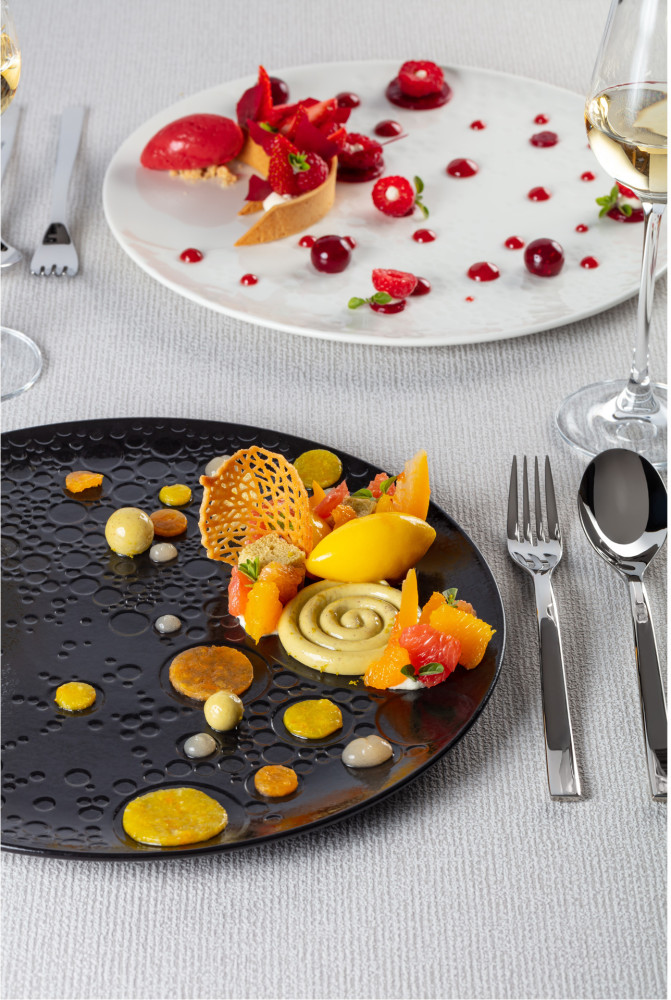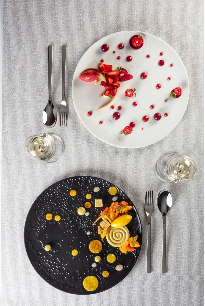 Linia porcelany SUGGESTIONS inspiruje do wyrażania siebie poprzez kulinarne eksperymenty, w których dania łączą się z formą naczynia, dostarczając kompletną fuzję doznań. Poza różnymi teksturami emalii, SUGGESTIONS oferuje kilka barw: poza klasycznym odcieniem porcelany, również czerń i ciepły brąz. To kolekcja stworzona dla szefów kuchni otwartych na eksperymentowanie i pragnących wyeksponować swoje dania w niepowtarzalny sposób. Wysoka odporność na uszkodzenia mechaniczne doskonale sprawdza się przy wykorzystaniu tej zastawy w restauracjach i hotelach.
