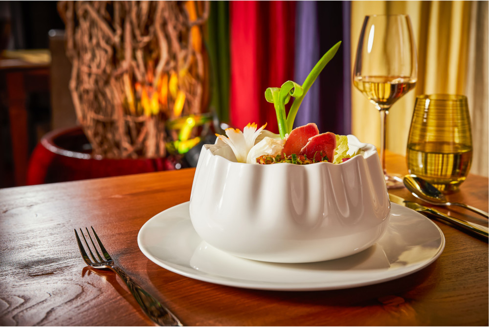 Linia porcelany SUGGESTIONS inspiruje do wyrażania siebie poprzez kulinarne eksperymenty, w których dania łączą się z formą naczynia, dostarczając kompletną fuzję doznań. Poza różnymi teksturami emalii, SUGGESTIONS oferuje kilka barw: poza klasycznym odcieniem porcelany, również czerń i ciepły brąz.