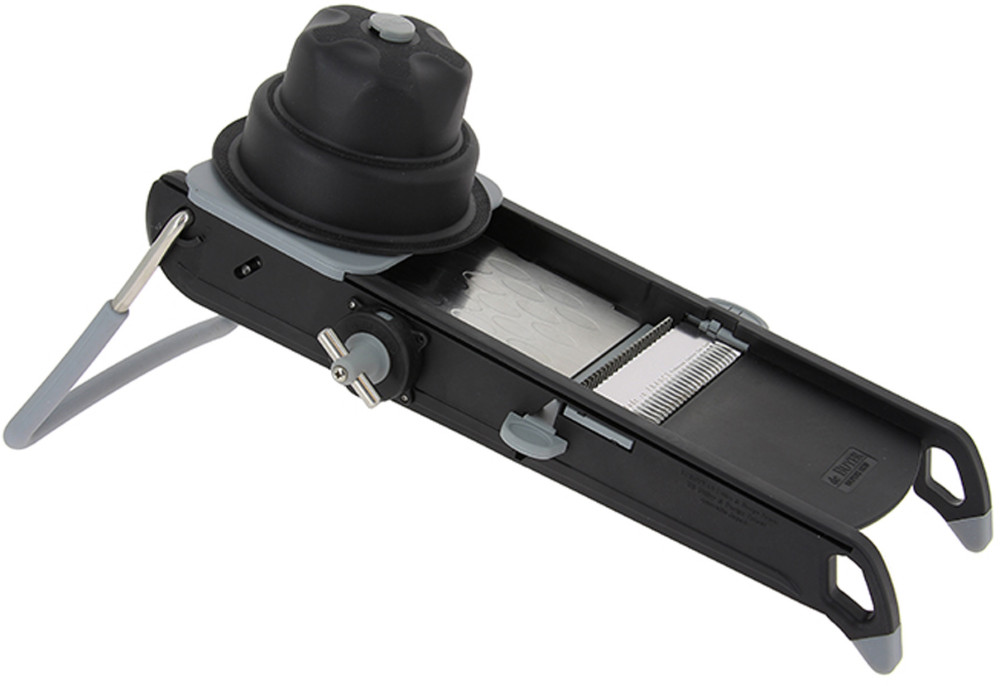 Mandolina wyposażona jest również w antypoślizgowe nóżki i ergonomiczny popychacz.