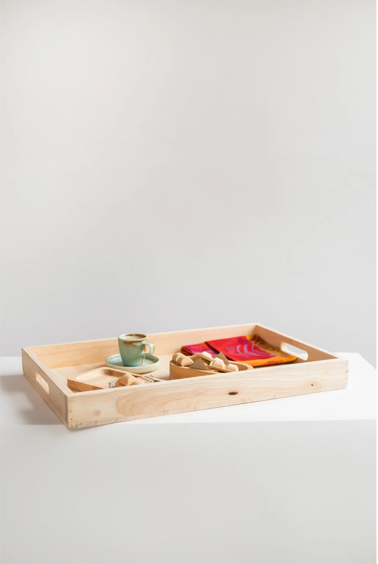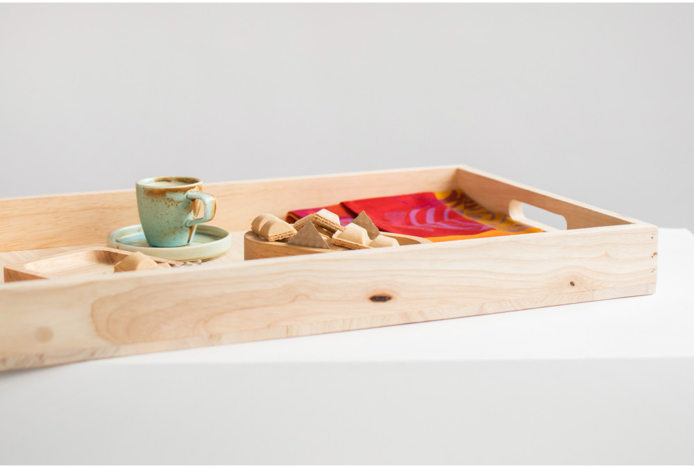 Taca Verlo wykonana jest z drewna mango. Taca Verlo w naturalnym kolorze jest lakierowana, co zabezpiecza ją przed uszkodzeniem. Dwa wygodne uchwyty pozwalają na pewne i komfortowe przenoszenie tacy. Podwyższone ranty, oprócz walorów wizualnych, zabezpieczą przed zsuwaniem się jedzenia czy napojów.