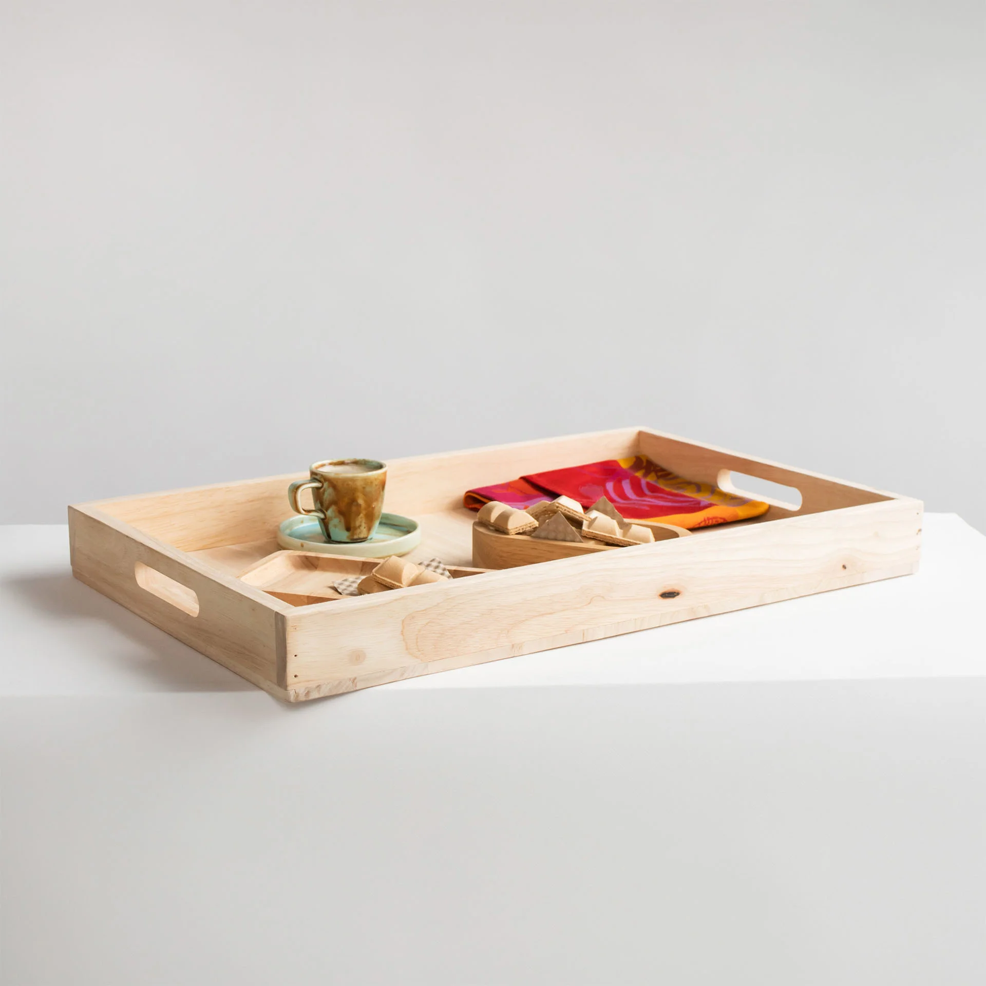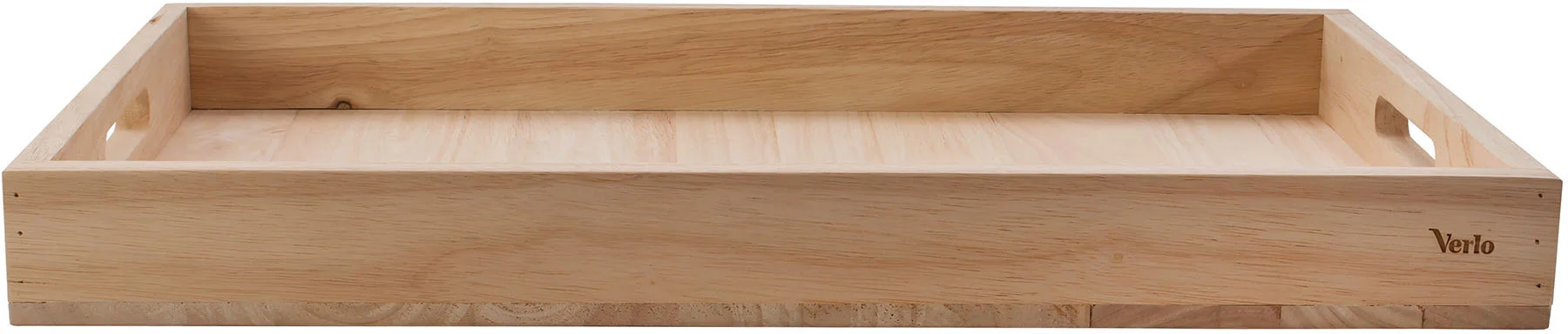 Taca Verlo wykonana jest z drewna mango. Taca Verlo w naturalnym kolorze jest lakierowana, co zabezpiecza ją przed uszkodzeniem. Dwa wygodne uchwyty pozwalają na pewne i komfortowe przenoszenie tacy. Podwyższone ranty, oprócz walorów wizualnych, zabezpieczą przed zsuwaniem się jedzenia czy napojów.