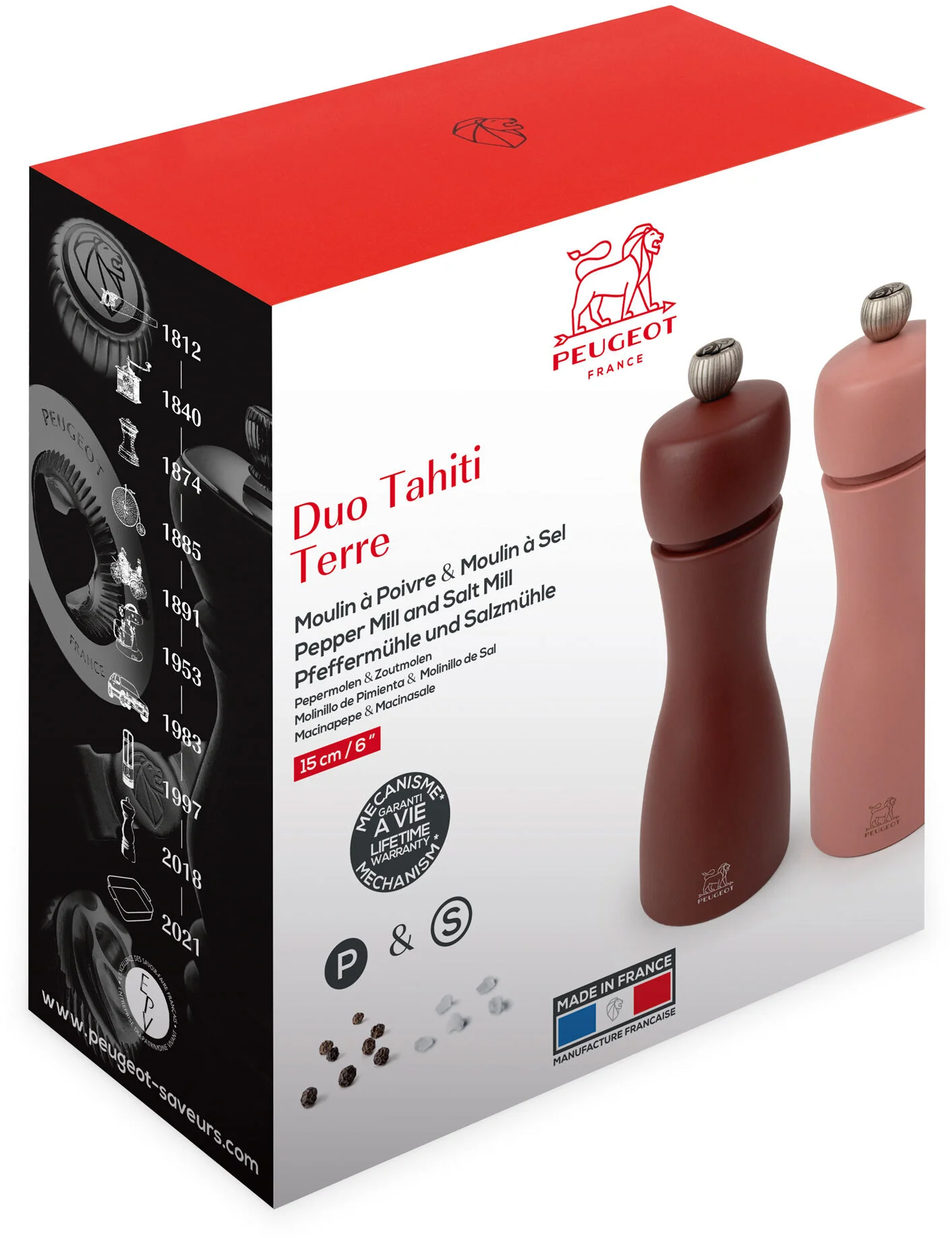 Młynki firmy PEUGEOT używane są w kuchniach na całym świecie od blisko 200 lat stając się ikoną francuskiej kuchni. Większość cyklu produkcyjnego odbywa się w fabryce PEUGEOT w Quingey znajdującej się w departamencie Doubs w Burgundii. Dzięki pełnej kontroli produkcji mechanizmy mielące młynków objęte są dożywotnią gwarancją.