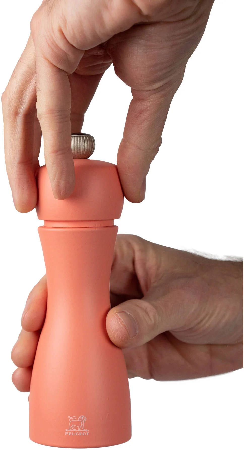 Ustawienie grubości mielenia w młynkach PEUGEOT może odbywać się bądź poprzez tradycyjną płynną regulację dzięki dokręcenie pokrętła w górnej części korpusu, bądź w przypadku młynków z mechanizmem uSelect, przez wybór jednego z 6 stopni grubości mielenia.