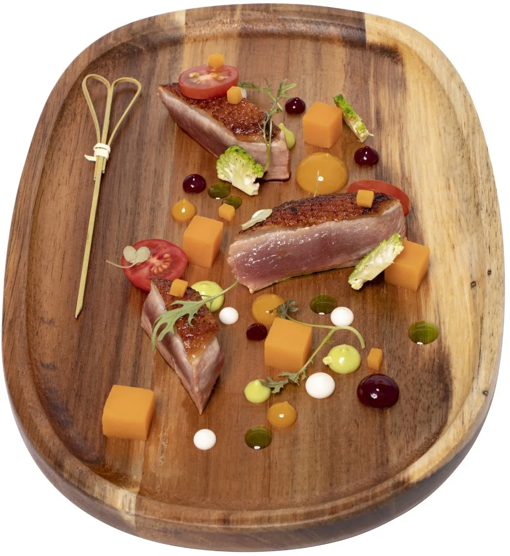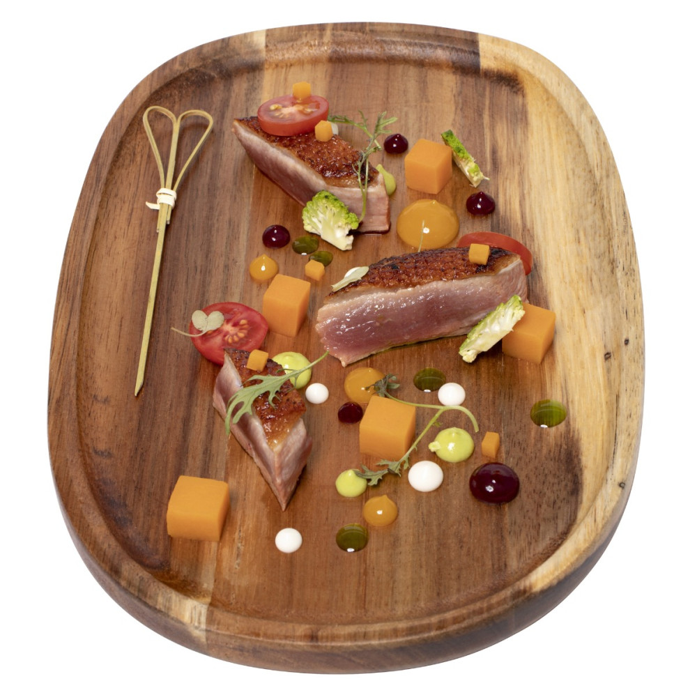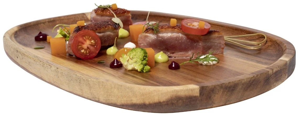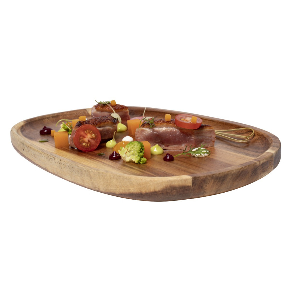 Talerze drewniane Verlo wykonane z wysokiej jakości drzewa akacjowego, to efektowny i praktyczny sposób na prezentowanie dań. To nietuzinkowy i nowoczesny sposób na ciekawe serwowanie jedzenia zarówno w domu jak i w hotelach czy podczas większych bankietów prezentując na nich np. dania fingerfood lub przekąski.