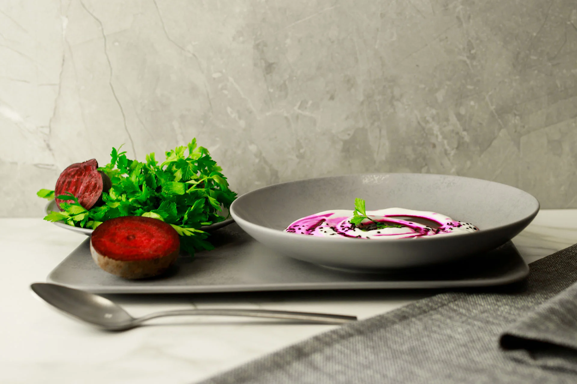 Linie SHALE i KARBON można dowolnie łączyć, komponując zastawę w surowych kolorach czerni i szarości.