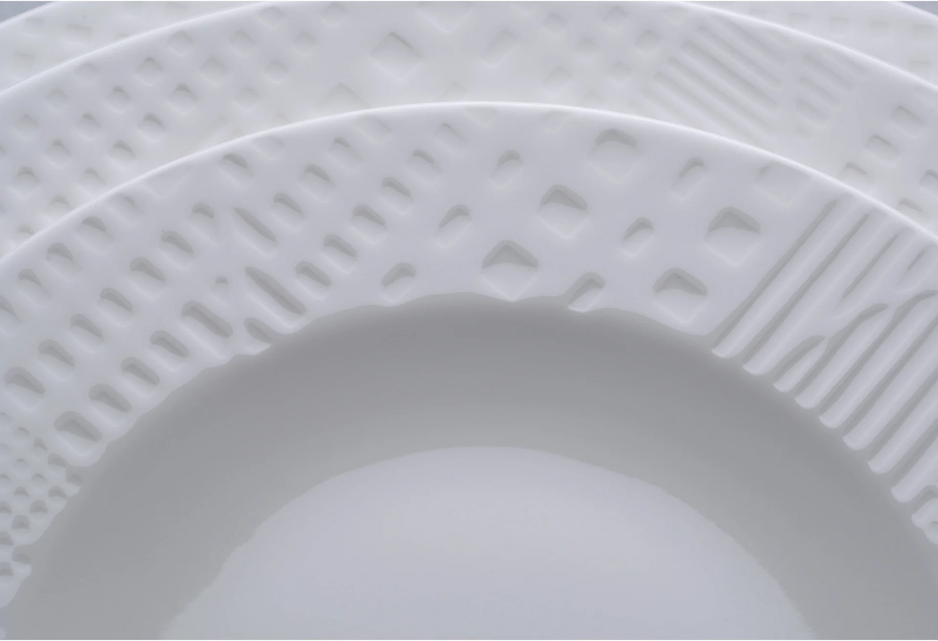 RAK PIXEL to linia porcelany, z subtelnym dekorem w formie drobnego, pozornie spontanicznego geometrycznego wzoru. Doskonale prezentuje się zarówno na obrusie, wśród kryształów i eleganckich dodatków, jak i w surowym, loftowym stylu.