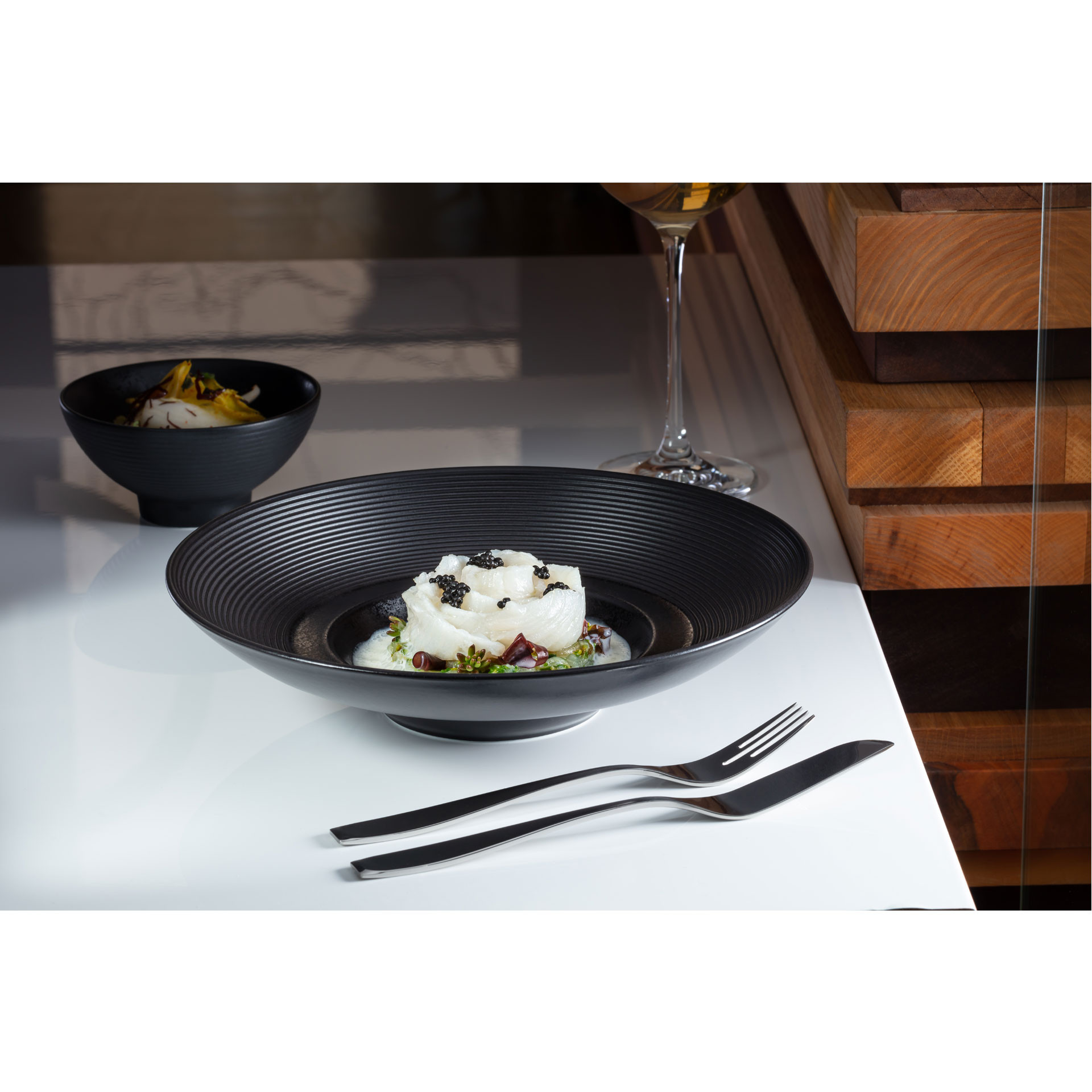 Linia porcelany EDGE została stworzona by uwodzić zmysły. Minimalistyczna, czarna porcelana z symetrycznie żłobionym rantem będzie stanowić wyjątkową oprawę dla każdej potrawy. Wyjątkowa trwałość szkliwa, odporność na uszkodzenia i zarysowania porcelany RAK, jest jej dodatkowym atutem.
