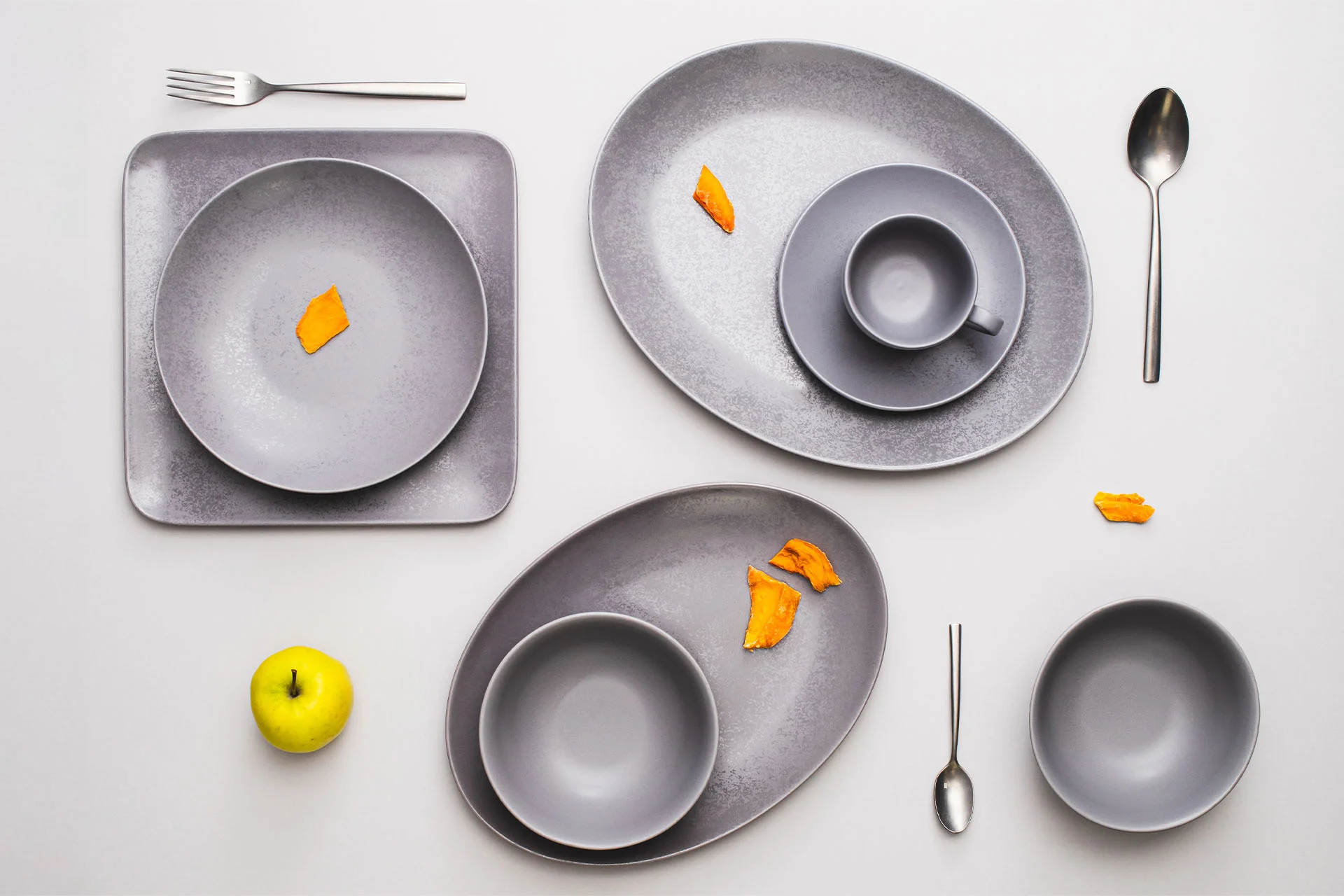 Linie SHALE i KARBON można dowolnie łączyć, komponując zastawę w surowych kolorach czerni i szarości.