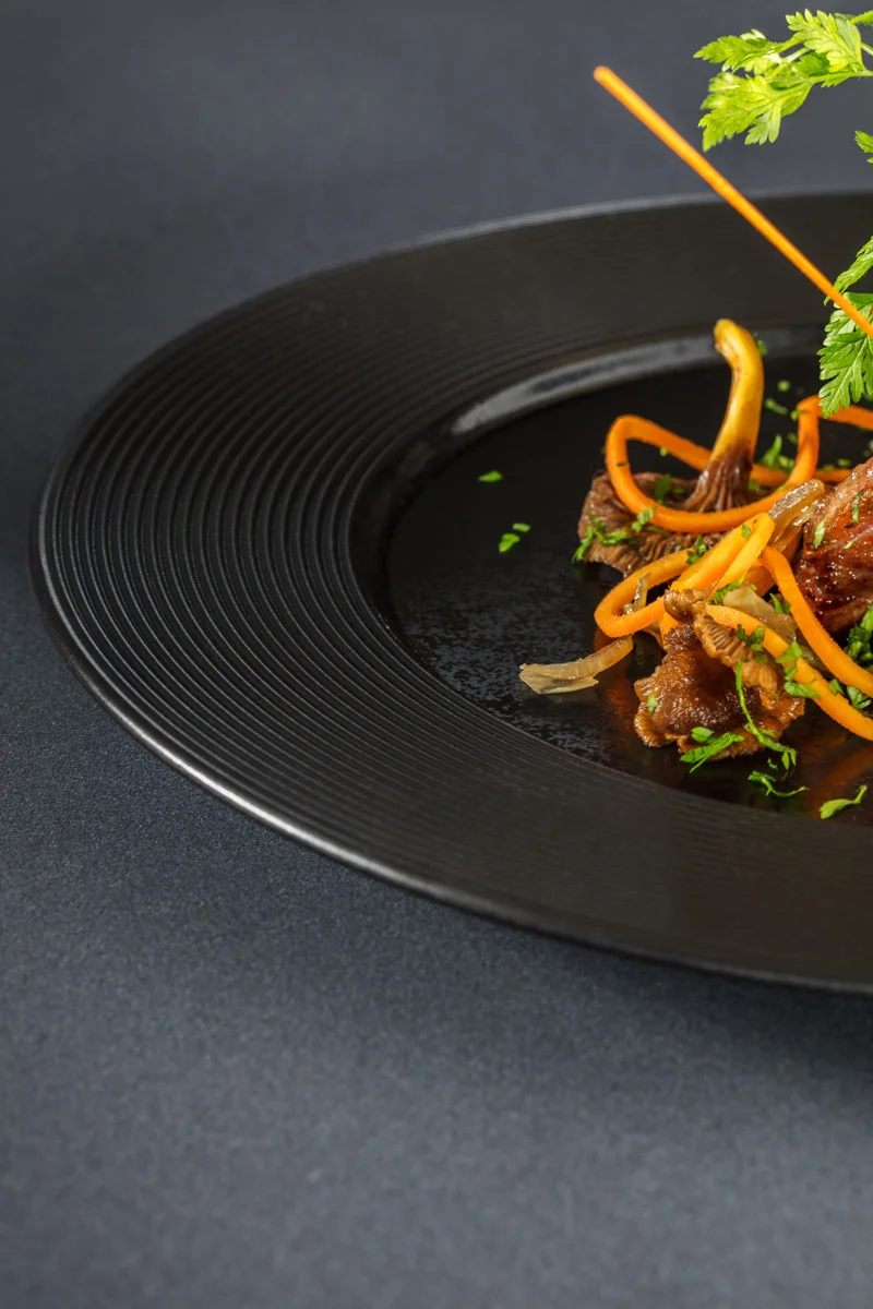 Linia porcelany EDGE została stworzona by uwodzić zmysły. Minimalistyczna, czarna porcelana z symetrycznie żłobionym rantem będzie stanowić wyjątkową oprawę dla każdej potrawy. Wyjątkowa trwałość szkliwa, odporność na uszkodzenia i zarysowania porcelany RAK, jest jej dodatkowym atutem.