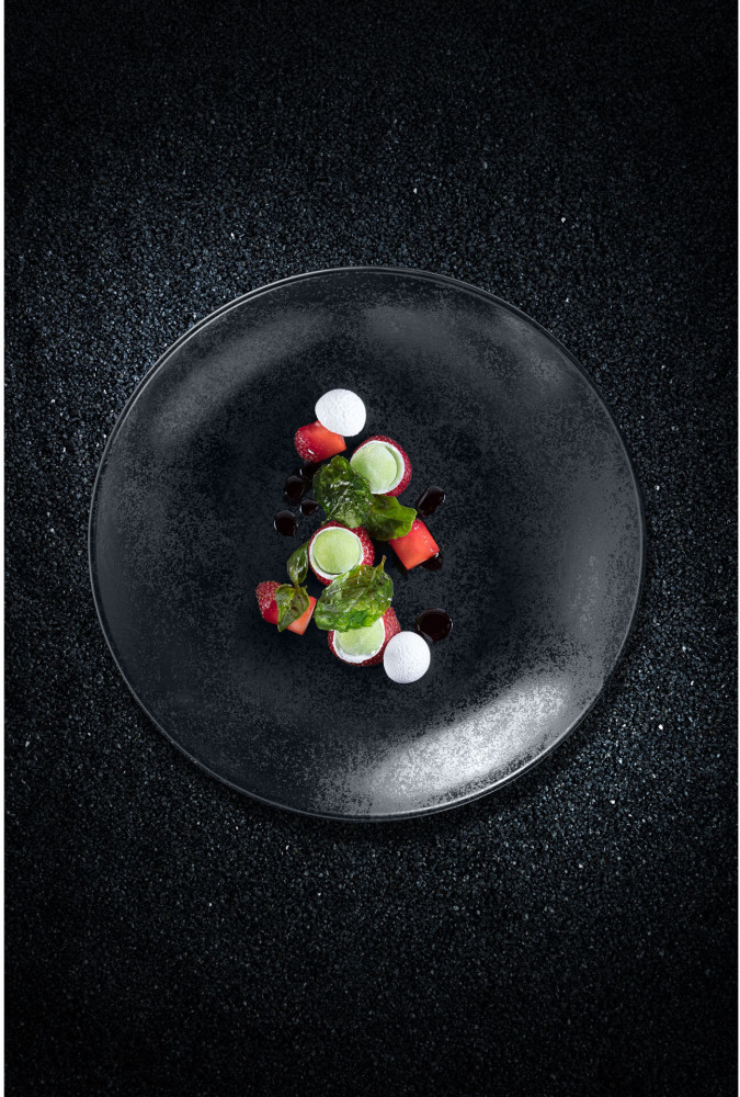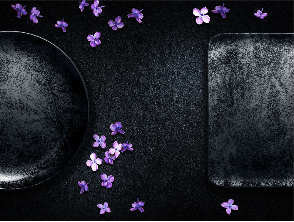 Linia KARBON nawiązuje do wyobrażeń o powstaniu świata, kiedy czarna materia zroszona kryształkami i pyłem węgielnym, wypełniała nicość. Matowa glazura, mieniąca się szklistym pyłem, inspirowana jest strukturą naturalnego węgla kamiennego. Łagodne, minimalistyczne formy talerzy i naczyń są idealnym tłem dla głębokiej czerni szkliwa, by jako całość idealnie eskponować każde serwowane danie.