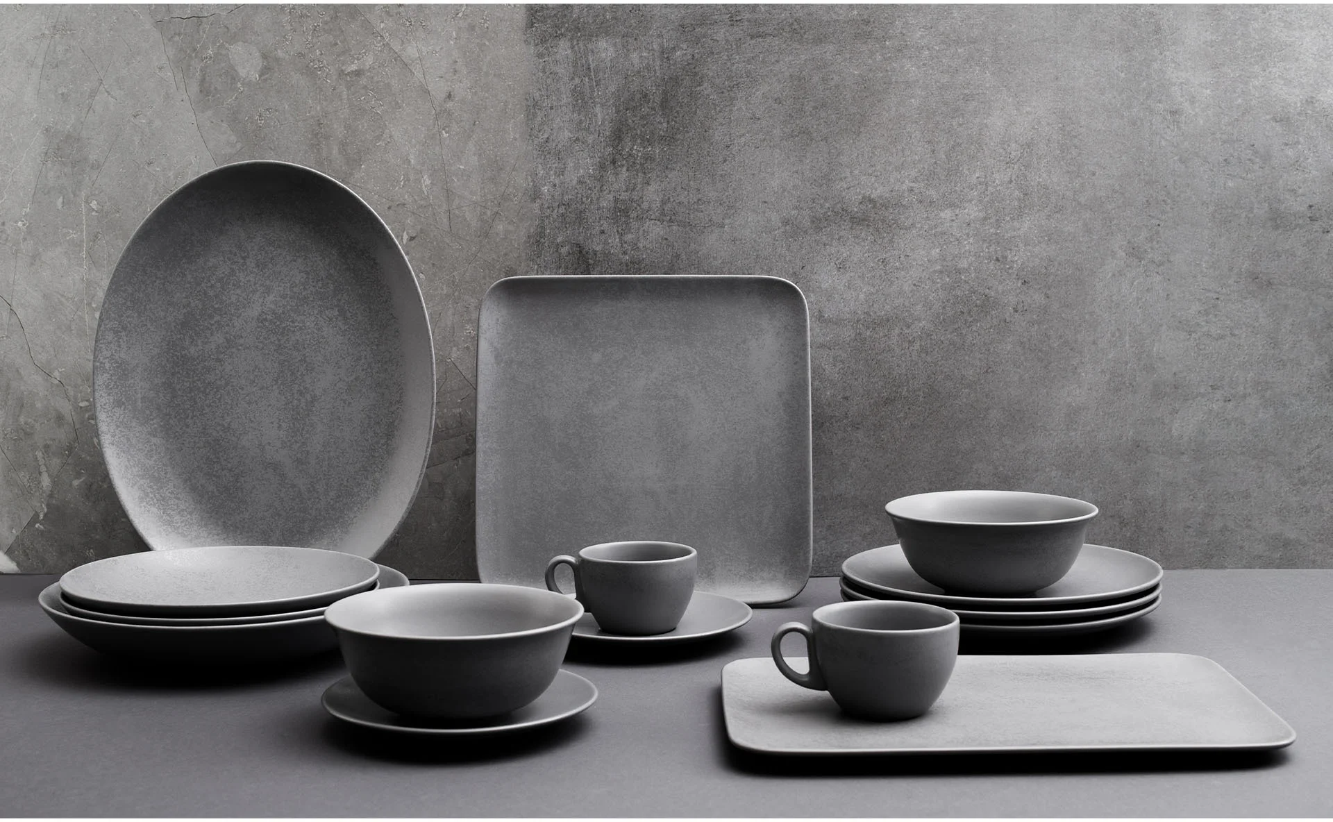 Linie SHALE i KARBON można dowolnie łączyć, komponując zastawę w surowych kolorach czerni i szarości.