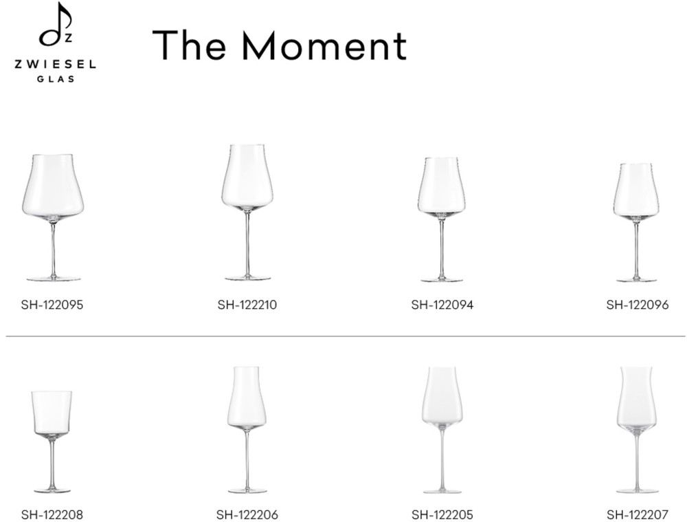 Kieliszki linii ZWIESEL HANDMADE THE MOMENT stanowią unikalne połączenie mistrzowskiej sztuki ręcznie formowanego szkła i designu docenionego wieloma nagrodami – w tym prestiżową reddot design award. Dzięki niesłychanie cienkim ściankom, ciężar szkła trzymanego w ręce jest prawie niezauważalny. Ta filigranowa konstrukcja emanuje elegancją, gwarantuje oddanie subtelnej gry świateł czyniąc degustację doświadczeniem kompletnym. Szkło, które przyciąga spojrzenia.