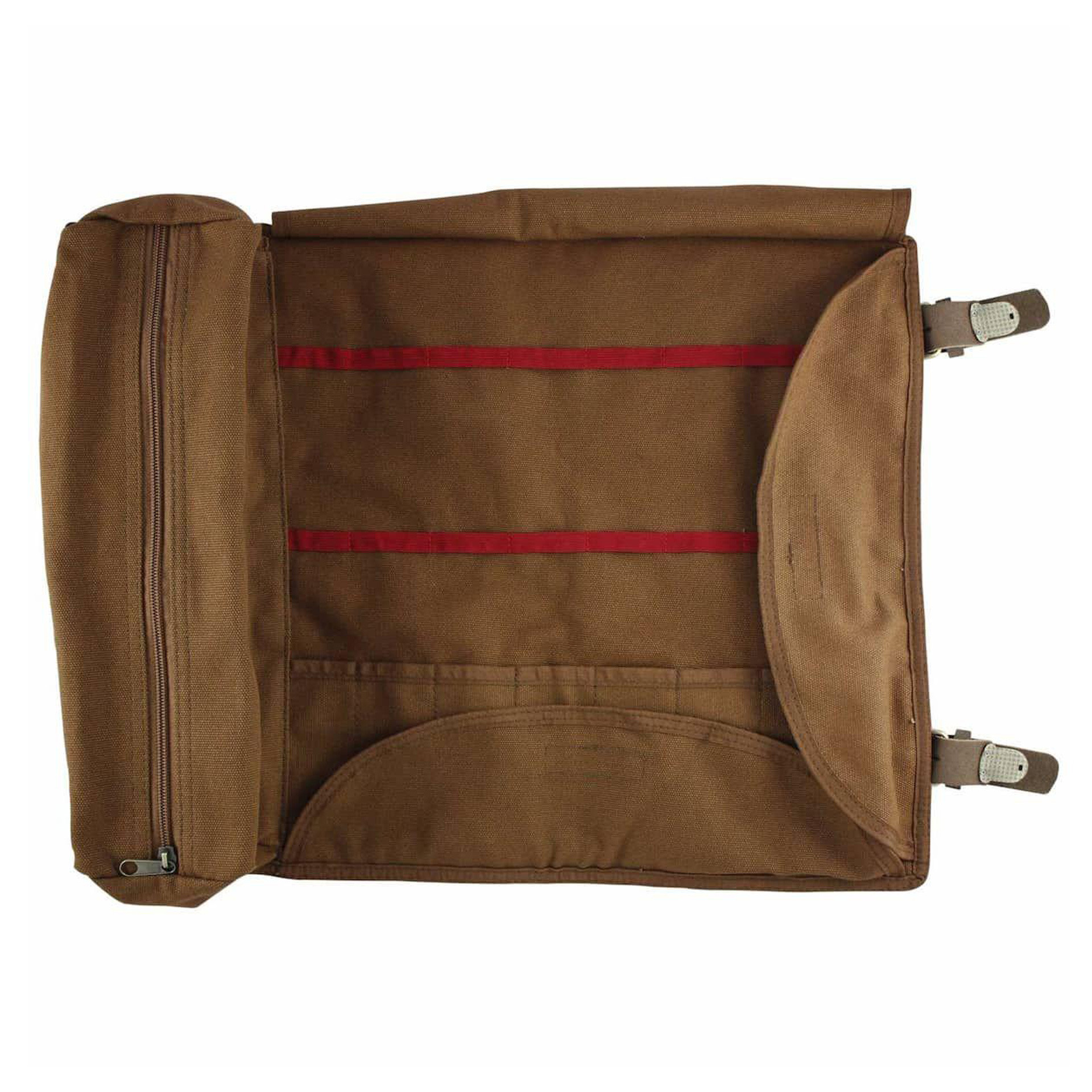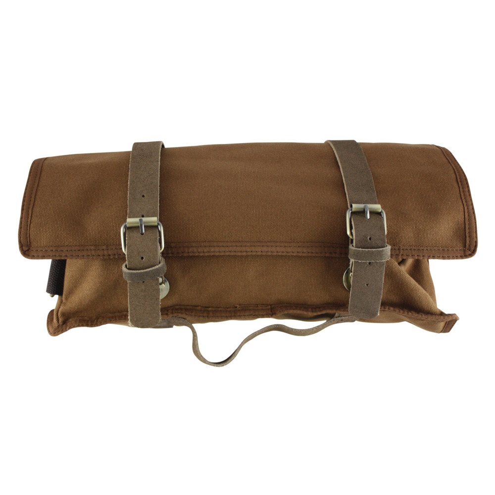 Torba na Twój ulubiony zestaw barmański zapewni dobrą ochronę akcesoriom barmańskim. Zabezpieczy ulubiony sprzęt przed uderzeniami i zarysowaniami. Torba wykonana jest z grubego płótna w modnym, brązowym kolorze. Zapinana na dwa solidne paski ze skóry naturalnej. Posiada również wygodny, skórzany uchwyt ułatwiający jej przenoszenie. Teraz możesz mieć swój ulubiony zestaw w zasięgu ręki.