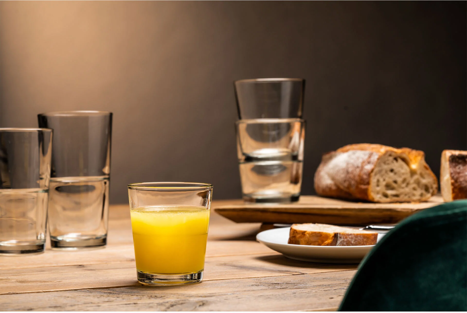 Uniwersalność. Szkło UP-ON doskonale sprawdza się w różnych sytuacjach. Czy to podczas codziennych posiłków w rodzinie, podczas przyjęć czy spotkań ze znajomymi, te szklanki są idealnym wyborem na różnego rodzaju napoje, od wody po koktajle i soki.