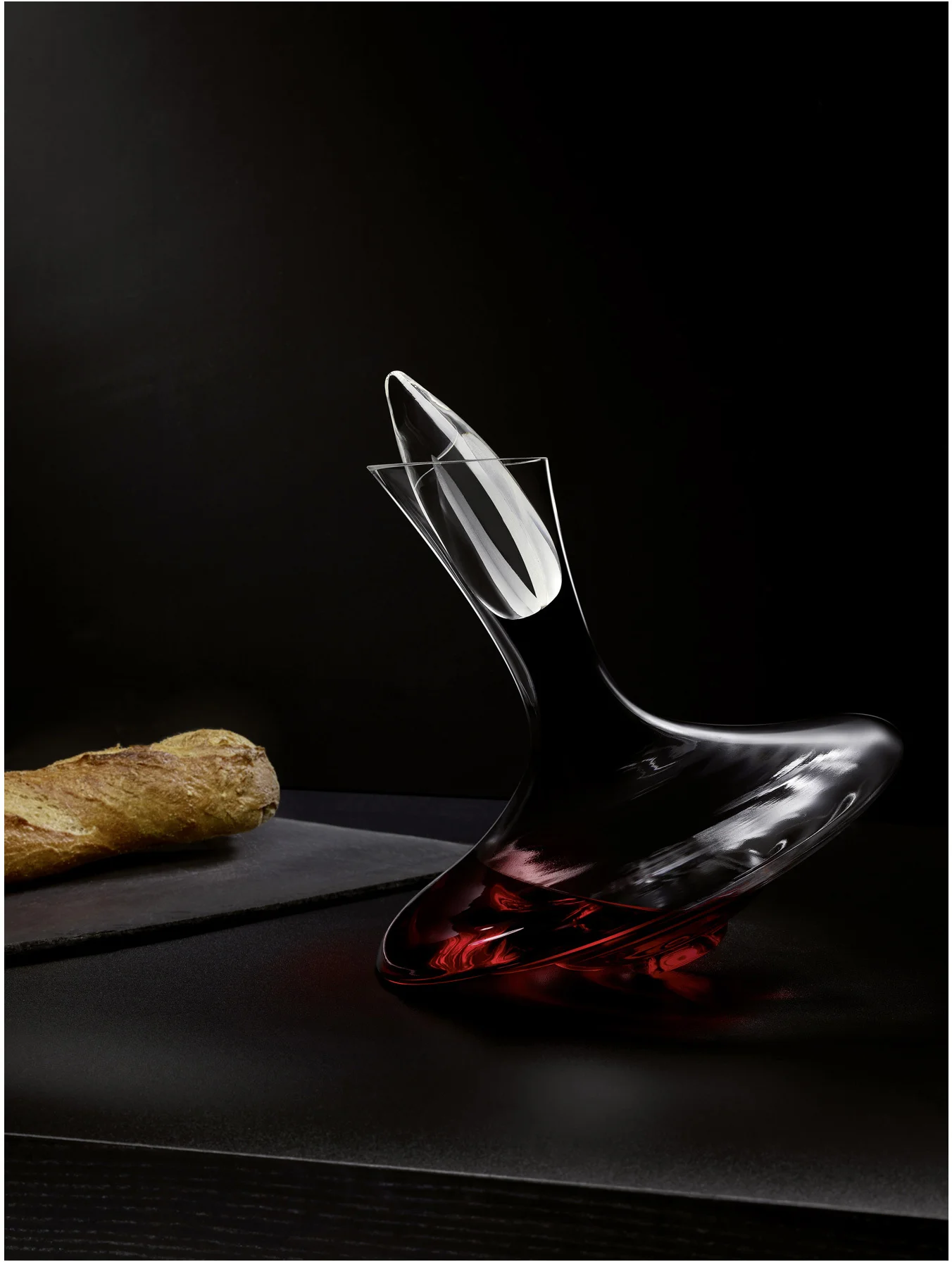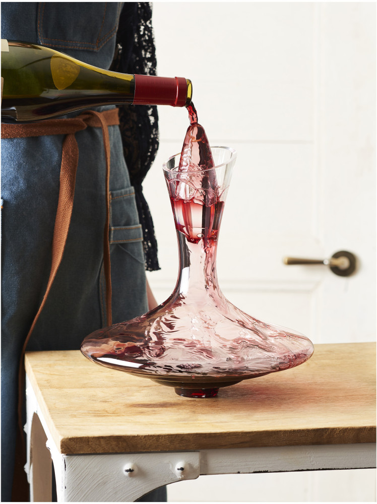 Karafka Variation to oryginalna propozycja dla miłośników wina od marki Peugeot. Łączy w sobie estetykę, pomysłowość i efektywność. Piękny, nietuzinkowy kształt i bardzo szeroka podstawa, zapewnia maksymalne napowietrzenie wina. Wlewając wino do karafki, rozlewa się ono po obszernych ściankach naczynia, tym samym dotlenia się, wydobywają z niego najlepsze aromaty. Dodatkowym elementem napowietrzającym może być przepiękny korek. Duży, szklany korek w kształcie łzy z pięknymi ryflami doskonale uwolni i uwydatni najcenniejsze smaki wina. Specyficzny kształt podstawy pozwala na ustawienie go w dwóch pozycjach: prostej lub pochylonej. Pochylona pozycja ułatwia obracanie wina w karafce. Falisty kształt podstawy sprzyja mieszaniu się molekuł młodych czerwonych win. Karafka Variation wytwornie udekoruje Twój stół i zachwyci gości.