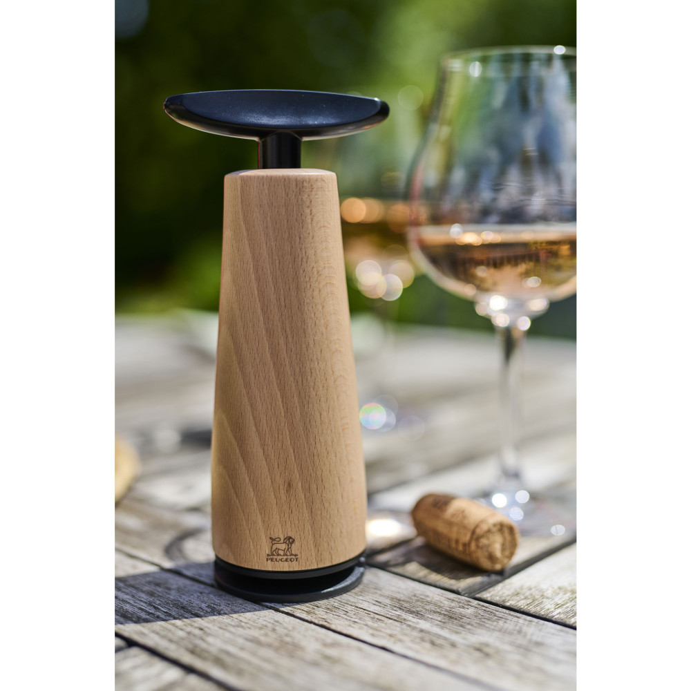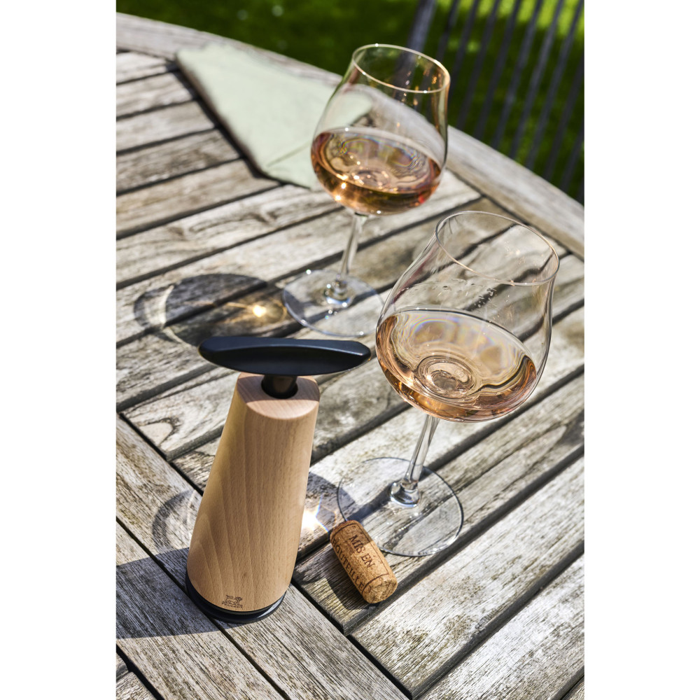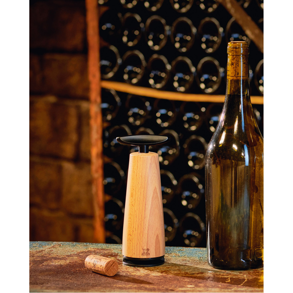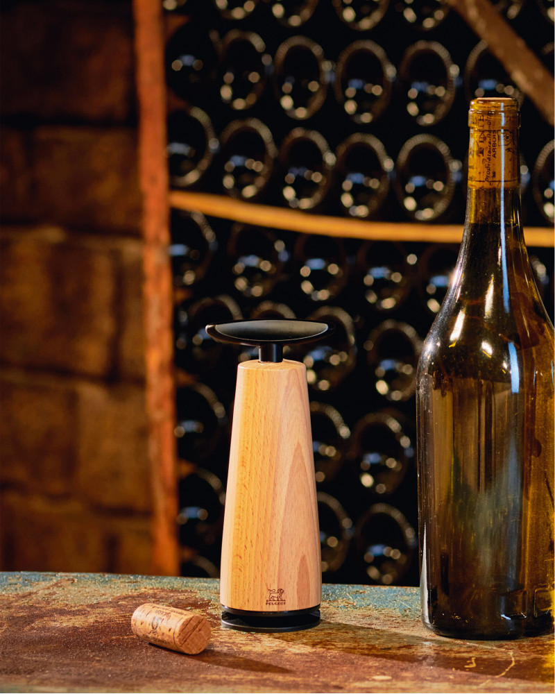 Korkociąg VIGNE to zaskakująca forma połączona z niezawodnym mechanizmem. Wykonany został z największą starannością z certyfikowanego drzewa orzechowego (PEFC). Delikatne, pionowe smugi drewna bukowego łącza się gustownie z ciemnymi elementami korkociągu. Czarny, designerski uchwyt nawiązuje swym kształtem do winorośli i korzeni. Innowacyjny, opatentowany przez firmę Peugeot mechanizm wyciągania korków zaskakuje pomysłowością i funkcjonalnością. Korkociąg Vigne to doskonały prezent dla wszystkich koneserów win. Korkociąg sprawdza się zarówno do wyciągania korków naturalnych jak i syntetycznych. Rękojeść korkociągu w kolorze czarnym wykonana jest ze stopu cynku znanego również pod nazwą ZAMAK.