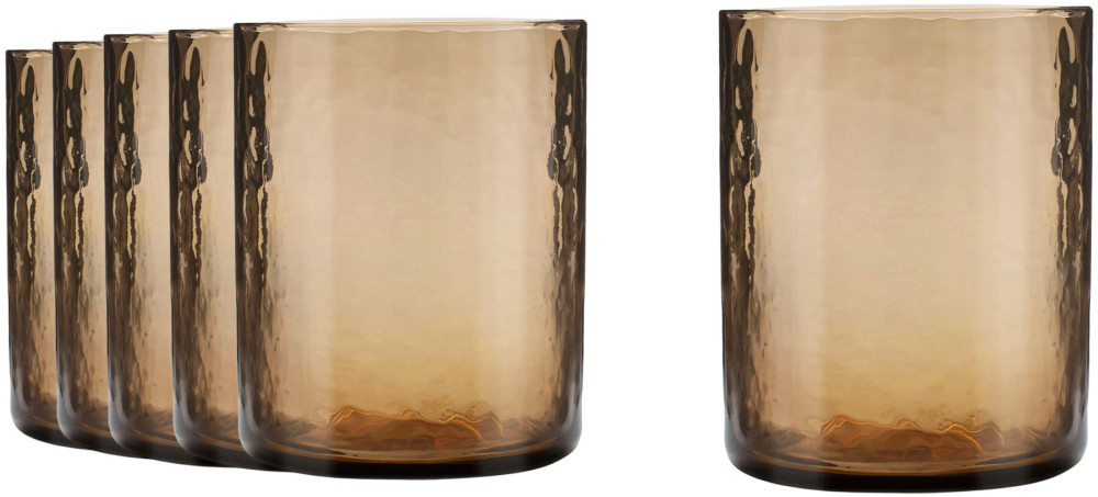 Szklanka VITERA marki Verlo wyróżnia się elegancją bursztynowego szkła i subtelną, lekko „młotkowaną” fakturą powierzchni. Delikatne nierówności sprawiają, że światło pięknie podkreśla głębię barwy, nadając każdemu napojowi wyjątkowej oprawy. To szkło, które łączy dekoracyjny charakter z codzienną funkcjonalnością – trwałe, wygodne w użytkowaniu i bezpieczne do mycia w zmywarce.