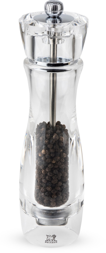 Młynki Vittel wykonane z wysokiej jakości przezroczystego akrylu zachwycają smukłą linią i pięknymi blikami chromowanego metalu i masy akrylowej. Doskonale uwidoczniona przyprawa wewnątrz młynka, to dodatkowy element, który uwydatni aranżację stołu czy kuchni. Przezroczystość młynka pozwala na szybka i łatwą ocenę jego zawartości, a w razie potrzeby uzupełnienie przypraw. Młynek jest bardzo poręczny, lekki, wygodnie trzyma się go w dłoni, a gładka powierzchnia akrylu sprawia, że jest łatwy w czyszczeniu. Młynki w tym stylu doskonale pasować będą w nowoczesnych wnętrzach i aranżacjach kuchni czy jadalni. Młynki firmy PEUGEOT używane są w kuchniach na całym świecie od blisko 200 lat stając się ikoną francuskiej kuchni. Większość cyklu produkcyjnego odbywa się w fabryce PEUGEOT w Quingey znajdującej się w departamencie Doubs w Burgundii. Dzięki pełnej kontroli produkcji mechanizmy mielące młynków objęte są dożywotnią gwarancją.
