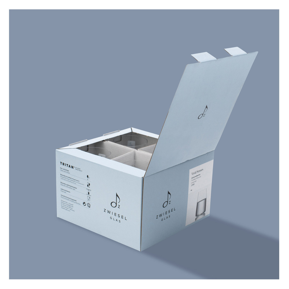 Na linię szkła VIVID SENSES składa się pięć kieliszków do wina oraz szklanka uniwersalnego przeznaczenia. Każdy z kieliszków posiada odrębną charakterystykę odpowiednią dla wydobycia głębi aromatu danego typu wina, niezależnie od tego czy jest ono białe, czerwone czy różowe. Charakter, bukiet, zapach i smak wina decydują o wyborze odpowiedniego kieliszka, nie zaś kolor - ta idea przyświecała projektantom ZWIESEL GLAS przy tworzeniu tej wyjątkowej linii.