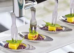 Widelczyk do tapas to oryginalny sposób na zaserwowanie przekąsek i monoporcji na przyjęciach bankietowych czy domowych spotkaniach. Zaskocz swoich gości wyjątkowymi propozycjami kulinarnymi i cieszcie się wyjątkową atmosferą przyjęcia. Naczynia wykonane ze szlachetnej stali 18/10 poza wizualnym walorem mają też cechę wielokrotnego użytku. Możesz bezpiecznie myć je w zmywarce i wielokrotnie serwować wspaniałe przekąski. Zobacz szerszą ofertę akcesoriów na takie okazje FINGERFOOD.
