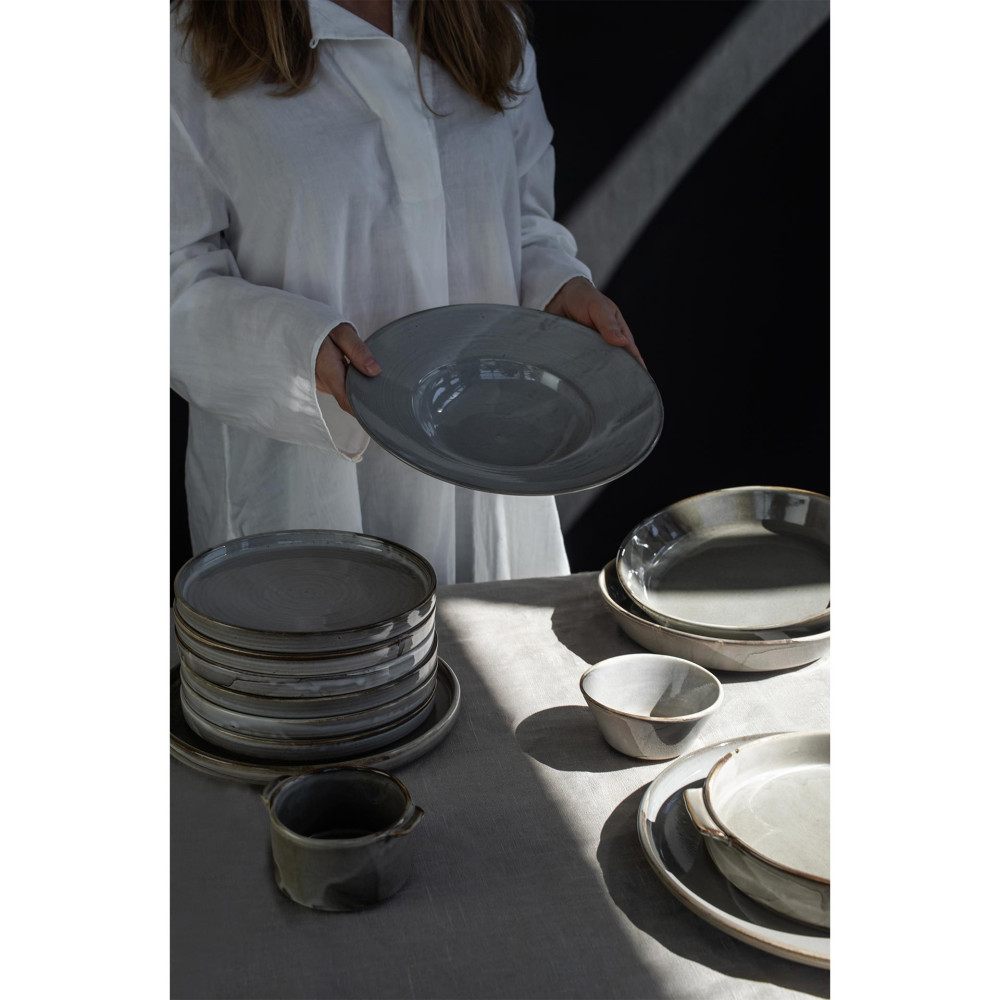 Stwórz pełną uroku aranżację stołową. Piękny połysk glazury, neutralna, minimalistyczna-ciepła szarość to idealna propozycja ponadczasowej zastawy stołowej. Płaskie i głębokie talerze, misy, brytfanny i ramekiny do zapiekania to podstawa do stworzenia kompletnej aranżacji stołu. Możesz łączyć i mieszać elementy kolekcji z innymi tworząc oryginalną kompozycję. Prostota, subtelność i nawiązanie do rękodzieła, to kwintesencja tej kolekcji. Przygotowane dania możesz zapiekać w temp. do 200 stopni i serwować je bezpośrednio po wyjęciu z piekarnika.