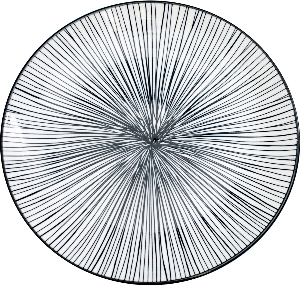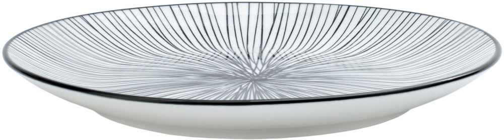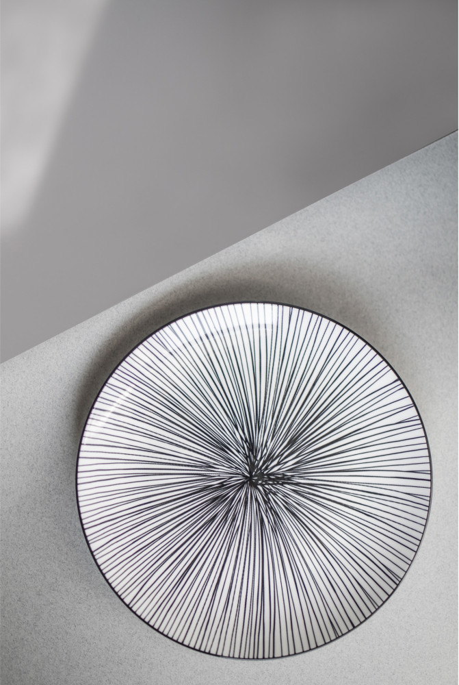 Asortyment tej kolekcji obejmuje płaskie talerze, talerze głębokie oraz miseczki, wszystko to ozdobione dwoma wyjątkowymi, czarno-białymi wzorami inspirowanymi motywami zwierzęcymi. Charakterystyczne wykończenie rantu naczynia w ciemnym, jednolitym kolorze doskonale uzupełnia wzory, tworząc kompletną kompozycję.