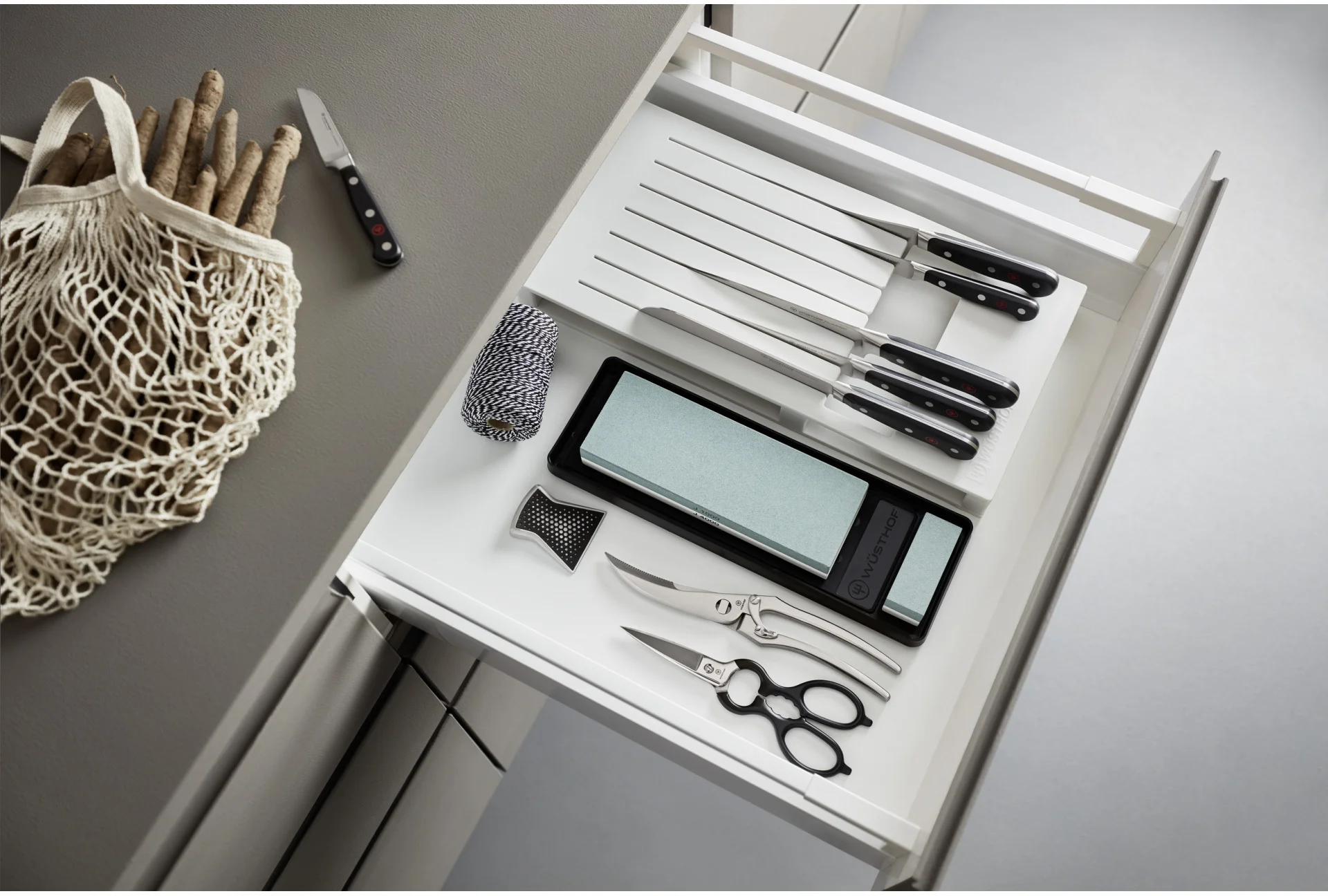 Organizer do szuflady marki WÜSTHOF to doskonały sposób na utrzymanie porządku w kuchni bez zajmowania cennego miejsca na blacie. Dzięki niemu Twoje noże będą zawsze na swoim miejscu, gotowe do użycia. Organizer utrzymuje noże na miejscu, zapobiegając ich zużyciu lub uszkodzeniom. Zapobiega również skaleczeniom, chroniąc ostrza noży.